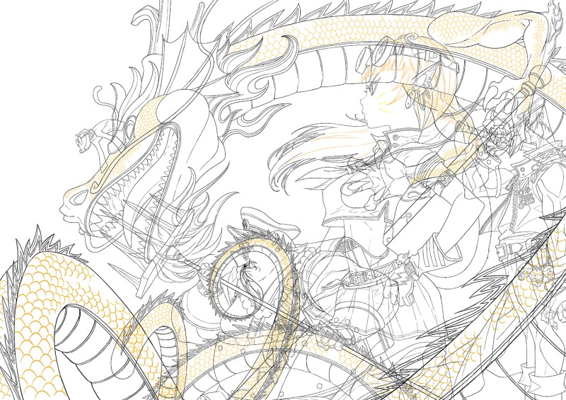 竜を清書しました。他のキャラクターも清書ができたので、塗り作業に入っていきます!