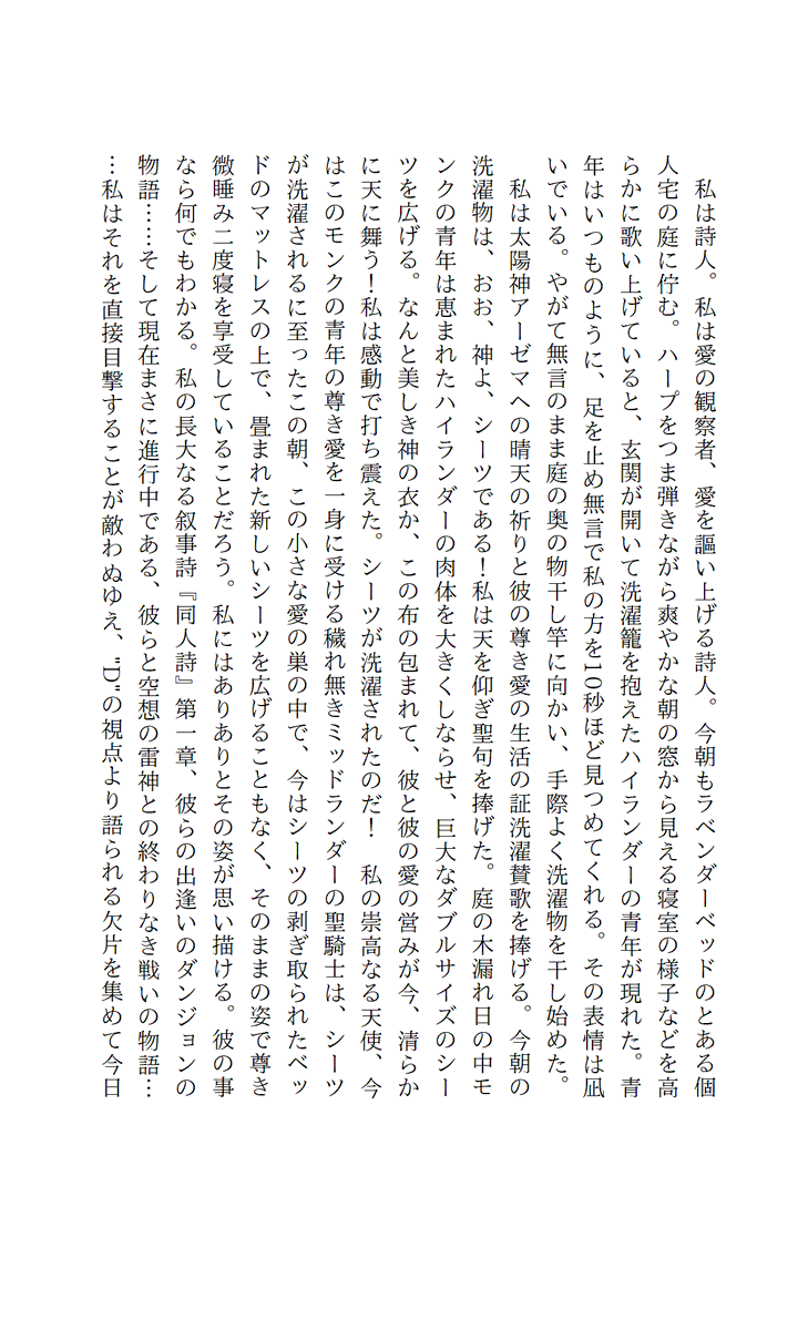 すきま☆quiet followDOODLE有志の詩人からミドナとモさんを讃える同人詩を頂きましたのでここに展示します!ありがとう頭のおかしな詩人!!(弊作の詩人はミドナとモさんの事を、推しを見る目で応援しています) #ミドナとモさん midnaAndMo. show all(+1 images) Tap to full screen (size:729x1200).Repost is prohibited Let's send reactions! freqpopularsnackothersPayment processing Replies from the creator Follow creator you care about!☆quiet follow すきまDOODLE覚書:原案りひの書いてくれた人物紹介と相関図 すきまDOODLE有志の詩人からミドナとモさんを讃える同人詩を頂きましたのでここに展示します!ありがとう頭のおかしな詩人!!(弊作の詩人はミドナとモさんの事を、推しを見る目で応援しています) 2 すきまDOODLE同居後のイチャイチャ・肌色多め(ナモックスもあります) 4 すきまDOODLE初めてのモナックス(ダメージのでかさにミドナがランパを発動する五秒前) すきまDOODLE腐れ縁にモさんが諦め始めた飲みの席で、ミドナが特に感慨もなく路地裏にやり捨てられた話をした回 すきまDOODLE以前ツイッタにあげてたナモナ関係まとめ/同居前 2 related works すきまDOODLE覚書:原案りひの書いてくれた人物紹介と相関図 すきまDOODLE有志の詩人からミドナとモさんを讃える同人詩を頂きましたのでここに展示します!ありがとう頭のおかしな詩人!!(弊作の詩人はミドナとモさんの事を、推しを見る目で応援しています) 2 すきまDOODLE同居後のイチャイチャ・肌色多め(ナモックスもあります) 4 すきまDOODLE腐れ縁にモさんが諦め始めた飲みの席で、ミドナが特に感慨もなく路地裏にやり捨てられた話をした回 すきまDOODLE以前ツイッタにあげてたナモナ関係まとめ/同居前 2 すきまDOODLE初めてのモナックス(ダメージのでかさにミドナがランパを発動する五秒前)