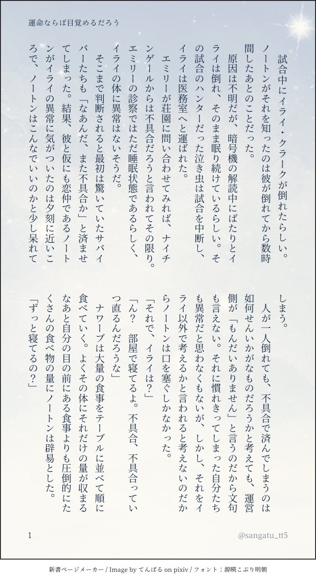 sangatu_tt5☆quiet followMOURNING🧲🔮運命ならば目覚めるだろう show all(+6 images) Tap to full screen (size:618x1132).Repost is prohibited Let's send reactions! freqpopularsnackothersPayment processing Replies from the creator Follow creator you care about!☆quiet follow sangatu_tt5DONE戦鴆🤕🔮試し行動と増長した欲望の話 2645 sangatu_tt5DONE🤕🔮髪を切ってもらう話 3200 sangatu_tt5MOURNING🔮💍の子どもを育てる🧲の話🧲🔮 1133 sangatu_tt5MOURNINGモグ妖🧲🔮食べる話 12 sangatu_tt5MOURNING🧲🔮運命ならば目覚めるだろう 7 sangatu_tt5MOURNING🧲🔮バレンタイン花束は暖炉で灰になって 7 recommended works kawauso_gtgtPROGRESSここからすけべに発展するなんて誰が思っただろうかの探占 1465 よ りDOODLE探鉱者は好きな子虐めそうですよね 2 kawauso_gtgtPROGRESS探占土竜と独歩行者進捗ちゅー 1076 Oni21480giriPROGRESS sangatu_tt5MEMO探占/騎観 1267 sangatu_tt5MEMO現パロ探占(俳優🧲とファン🔮) 4515 sangatu_tt5MEMO魂🧲×月🔮 505 sangatu_tt5MEMO探占♀/モグ月 766 sangatu_tt5MEMOモグ🧲と結晶になる🌙🔮のモグ月/探占 1844