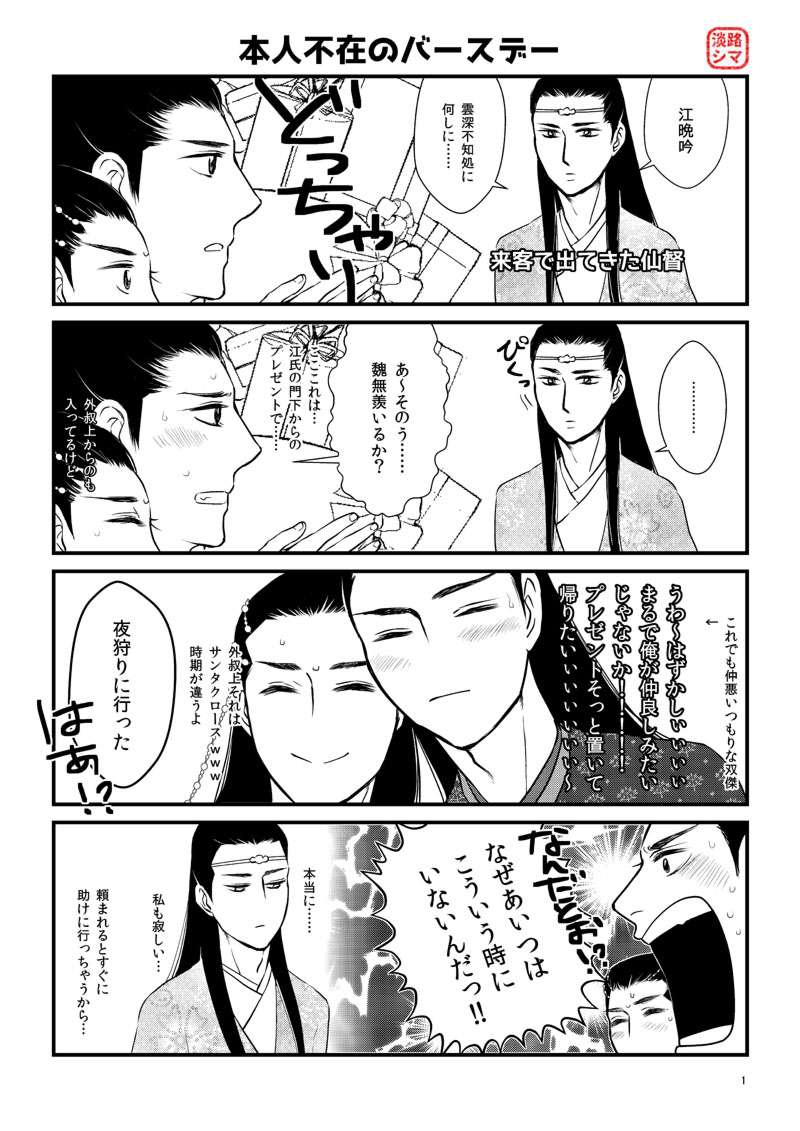 知己と双傑と甥が魏無羨の誕生日を祝う漫画です!藍兄上も出てきます。