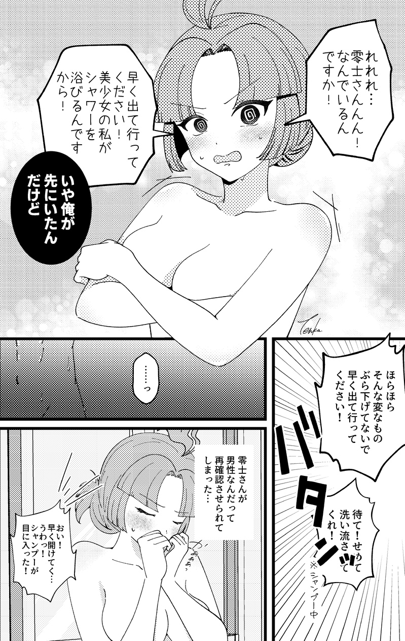 零士くんがシャワー&シャンプーしているところにエマちゃんが突入、零士くんを追い出すっていう流れです。水道代が勿体無いのでシャンプー中は止めてる。
