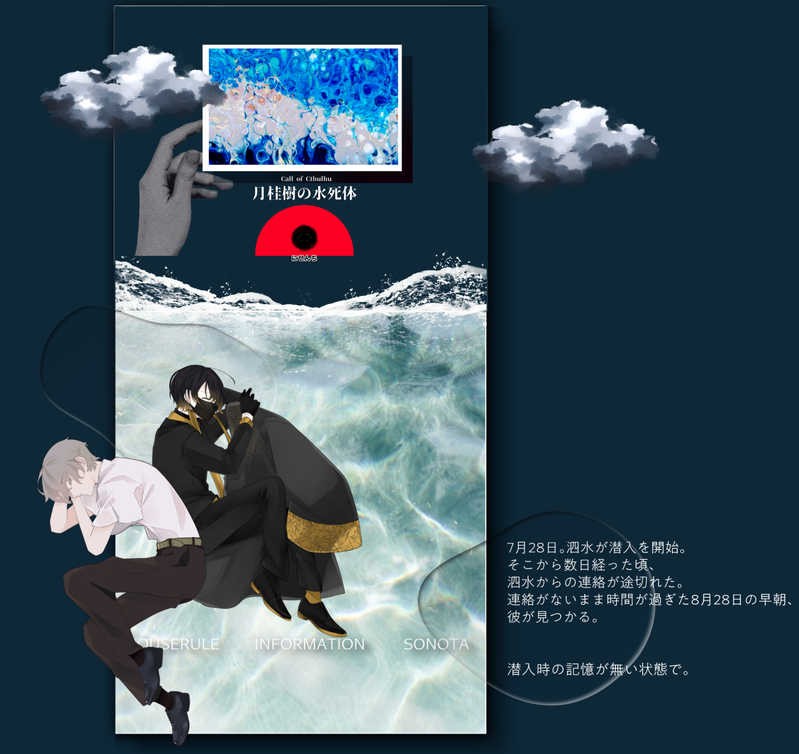 mt_pck☆quiet followDONECoC『月桂樹の水死体』KP⇒きくた(KPC:泗水 とまり)PL⇒ぷちこ(PC:黒葛 智菊)▽両生還 show all(+5 images) Tap to full screen (size:1597x1507).Repost is prohibited Let's send reactions! freqpopularsnackothersPayment processing Replies from the creator Follow creator you care about!☆quiet follow mt_pckDONECoC『HELLO,HUMANS!』KP⇒もくず(KPC:成井 大就)PL⇒ぷちこ(PC:古藤 李世)▽ 両生還 9 mt_pckDONECoC『トルチェ・デ・キッチュ!』KP⇒ゆこ(KPC:一 白)PL⇒さぎり(PC:天道 火輪) ⇒ぷちこ(PC:東雲 初晴) ⇒もくず(PC:香撫子)▽ 全生還 13 mt_pckDONECoC『カレー、ナンDEATHか!?』KP⇒岼(KPC:漆間 笹良)PL⇒ぷちこ(PC:迅波 鳴瀬)▽ 両生還 12 mt_pckDONECoC『あなたそれが怖いのです。』KP⇒ぷちこ(KPC:日輪)PL⇒ゆひくち(PC:椛)▽ 両生還 9 mt_pckDONECoC『ROOMCERF』KP⇒もくずPL⇒てと(PC:弥勒 市護)PL⇒ぷちこ(PC:宿里 咲藍)▽ 両生還 17 mt_pckDONECoC『わらう鬼』KP⇒たらいなHO1⇒さぎり(PC:天道 火輪)HO2⇒ぷちこ(PC:東雲 初晴)HO3⇒もくず(PC:香撫子)HO4⇒ゆこ(PC:一 白)▽ 全生還 16