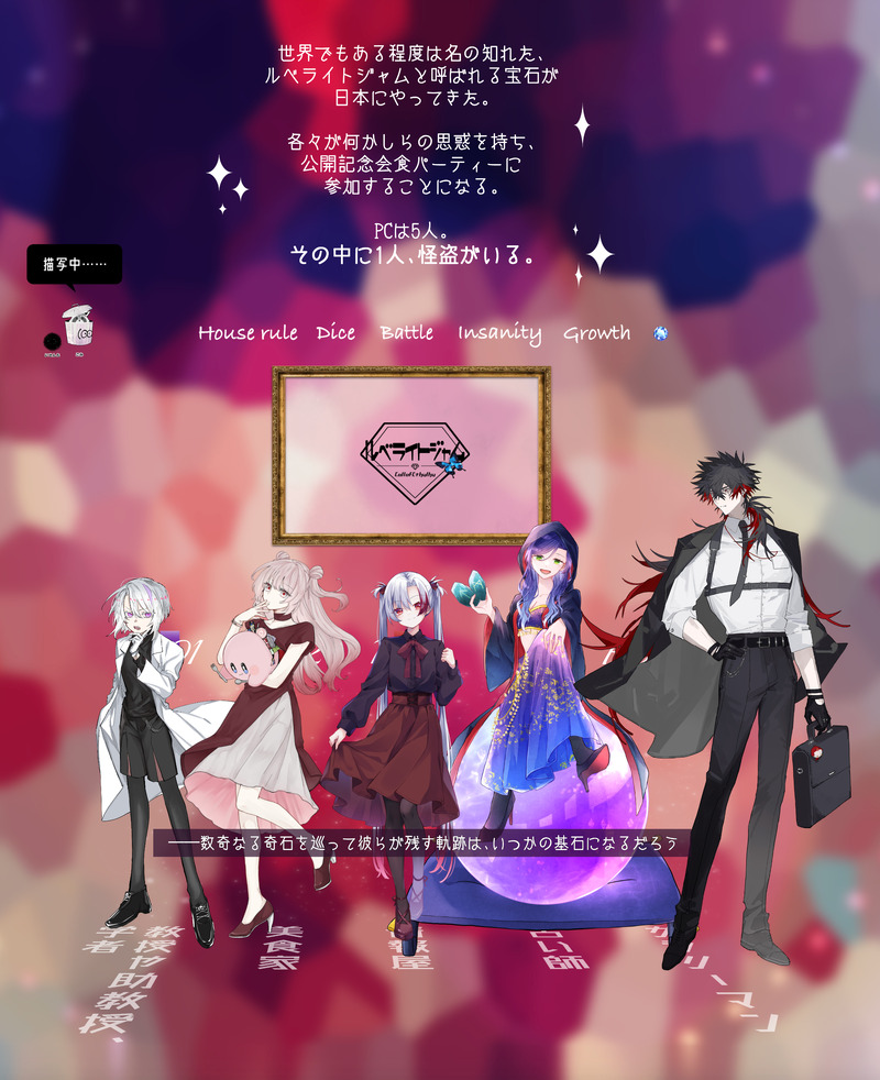 mt_pck☆quiet followDONECoC『ルベライトジャム』KP⇒ごみぱんだPLHO1⇒恒(HO教授:五十嵐 秋人)HO2⇒ぷちこ(HO美食家:柘植 百珂)HO3⇒さぎり(HO情報屋:紅坂 依鈴)HO4⇒Sb(HO占い師:十時 水晶)HO5⇒しゃの(HOサラリーマン:信条 凛継 )▽全生還 show all(+13 images) Tap to full screen (size:2268x2785).Repost is prohibited Let's send reactions! freqpopularsnackothersPayment processing Replies from the creator Follow creator you care about!☆quiet follow mt_pckDONECoC『HELLO,HUMANS!』KP⇒もくず(KPC:成井 大就)PL⇒ぷちこ(PC:古藤 李世)▽ 両生還 9 mt_pckDONECoC『トルチェ・デ・キッチュ!』KP⇒ゆこ(KPC:一 白)PL⇒さぎり(PC:天道 火輪) ⇒ぷちこ(PC:東雲 初晴) ⇒もくず(PC:香撫子)▽ 全生還 13 mt_pckDONECoC『カレー、ナンDEATHか!?』KP⇒岼(KPC:漆間 笹良)PL⇒ぷちこ(PC:迅波 鳴瀬)▽ 両生還 12 mt_pckDONECoC『あなたそれが怖いのです。』KP⇒ぷちこ(KPC:日輪)PL⇒ゆひくち(PC:椛)▽ 両生還 9 mt_pckDONECoC『ROOMCERF』KP⇒もくずPL⇒てと(PC:弥勒 市護)PL⇒ぷちこ(PC:宿里 咲藍)▽ 両生還 17 mt_pckDONECoC『わらう鬼』KP⇒たらいなHO1⇒さぎり(PC:天道 火輪)HO2⇒ぷちこ(PC:東雲 初晴)HO3⇒もくず(PC:香撫子)HO4⇒ゆこ(PC:一 白)▽ 全生還 16