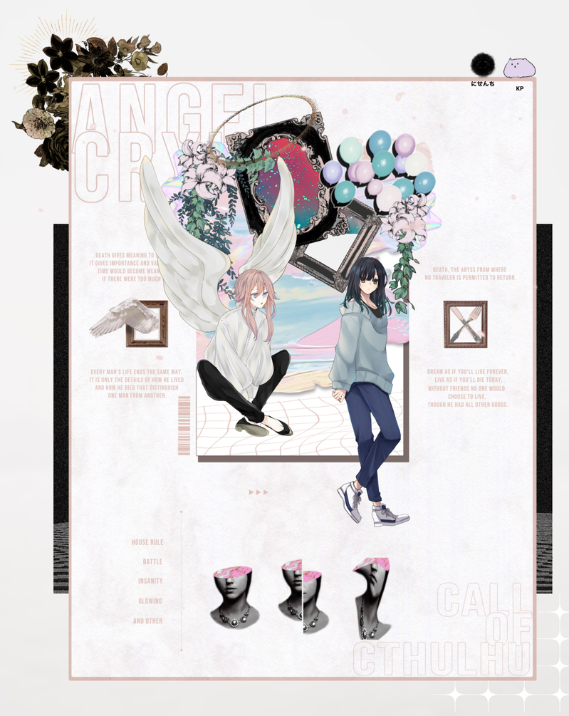 mt_pck☆quiet followDONECoC『Angle Crying』KP⇒はみ(HO2:筑紫 七緒)PL⇒ぷちこ(HO1:セラ)▽END 3 show all(+12 images) Tap to full screen (size:1437x1807).Repost is prohibited Let's send reactions! freqpopularsnackothersPayment processing Replies from the creator Follow creator you care about!☆quiet follow mt_pckDONECoC『HELLO,HUMANS!』KP⇒もくず(KPC:成井 大就)PL⇒ぷちこ(PC:古藤 李世)▽ 両生還 9 mt_pckDONECoC『トルチェ・デ・キッチュ!』KP⇒ゆこ(KPC:一 白)PL⇒さぎり(PC:天道 火輪) ⇒ぷちこ(PC:東雲 初晴) ⇒もくず(PC:香撫子)▽ 全生還 13 mt_pckDONECoC『カレー、ナンDEATHか!?』KP⇒岼(KPC:漆間 笹良)PL⇒ぷちこ(PC:迅波 鳴瀬)▽ 両生還 12 mt_pckDONECoC『あなたそれが怖いのです。』KP⇒ぷちこ(KPC:日輪)PL⇒ゆひくち(PC:椛)▽ 両生還 9 mt_pckDONECoC『ROOMCERF』KP⇒もくずPL⇒てと(PC:弥勒 市護)PL⇒ぷちこ(PC:宿里 咲藍)▽ 両生還 17 mt_pckDONECoC『わらう鬼』KP⇒たらいなHO1⇒さぎり(PC:天道 火輪)HO2⇒ぷちこ(PC:東雲 初晴)HO3⇒もくず(PC:香撫子)HO4⇒ゆこ(PC:一 白)▽ 全生還 16