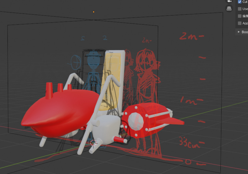メカモデリングやってみたくてこのサイズなら集中力が保ちそうだとおもったけど有機的な曲線でグワーッてなっているしサメの顔つくれる気がしない、凹白目みたいな構造でライトが浮遊してる感じかな… まあシルエットだけでもあると下書きが楽になったりするかもしれないから…