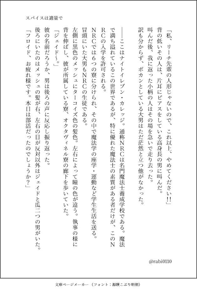 rabi0110☆quiet followDONE初めてのジェイ監の小説です。見る人によっては注意してください。 #ジェイ監 jayJr. ##OCT夢小説企画 show all(+28 images) Tap to full screen (size:630x928).Repost is prohibited Let's send reactions! freqpopularsnackothersPayment processing Replies from the creator Follow creator you care about!☆quiet follow rabi0110DONEマブ監オンリー開催おめでとうございます!今回の小説では、ゴスマリの内容が若干入りますので、ご了承ください。 17 rabi0110DONEさがくれ開催おめでとうございます!!今回は8ページ漫画+イラストとなっております。ラストのイラストは今後彼に明るい未来が来ることをこめて描きました。注意;お酒表現+7章ネタバレ含みます!!パスワードは開催日です。 9 rabi0110DONEテララブ開催おめでとうございます☺アンケートでは黒と紺色が同一でしたので迷いまhしたが、楽しくかけれました。相互さんありがとうございました!ネップリ番号;P4Y2667QRQ(5/27 11時まで)Passは今日の日付 rabi0110MENUテララブ開催おめでとうございます!今回のお話は少し大人になった監督生(ユウ)とジェイドのお話。⚠若干ゴスマリのネタバレがあります!!パスワードは本日の日付です! 15 rabi0110DONEゆあまい2023のWeb漫画完成しました!遅くなり申し訳ございませんでした!! 11 rabi0110DONE間違えて枠組みをつくったタロットカードの原案。なんかお蔵入りするのも悲しいから、ここでみてみてしますー! related works 2watoyoDOODLE【朝のボールペン落書き】【日楠♀】【先天性女体化】日高先輩×男装後輩サキュバス家系楠ちゃん。海編。本当に気にしてるのは。 きくちゃんDOODLEサタン様犬好きかと思いきやロクサーンみたいなパターンもあるのでやっぱ人外思考なのかな~ わたさくDOODLE ココノカSPOILER幻覚なので全くネタバレではないけど1072話の発言ネタ きくちゃんDOODLEサタン様犬好きかと思いきやロクサーンみたいなパターンもあるのでやっぱ人外思考なのかな~ べこDOODLEピンク色のバレンタインなヨウグズ🍫 ちゃづDONE描いたやつその1※茨あん、ジュンあん 17 ちゃづDONE描いたやつその1※茨あん、ジュンあん 17 nnnnnnoodderaDONE【腐向け】チャバが酔ってハ崎さんに甘えてる漫画。ハ崎さんがトイレに行くのを我慢していたりする。 4