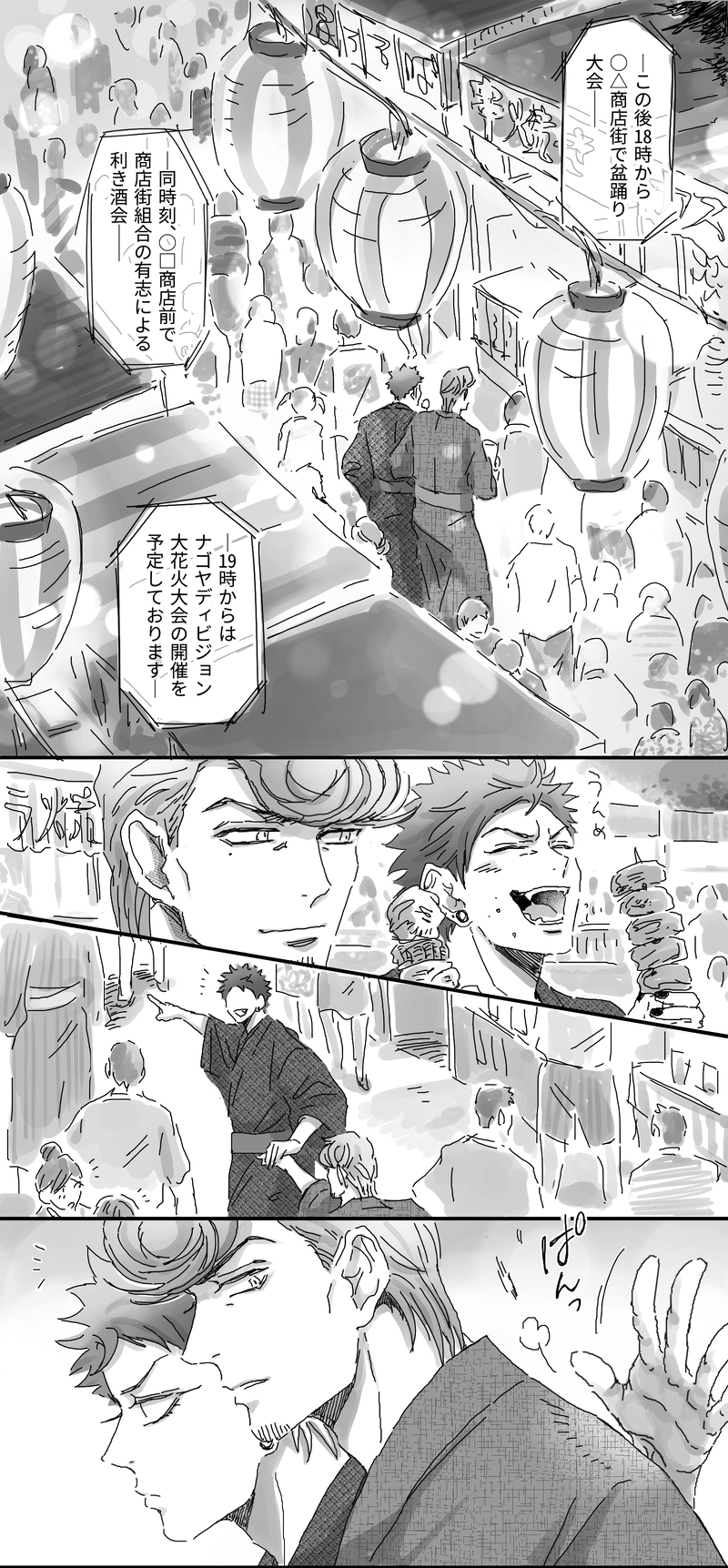koka_tin☆quiet followDOODLE空獄絵茶で、「夏祭り」というお題で描いた漫画です。明るいテーマなのに、息をするようにちょい怖要素を入れてしまう病気です。空却の誕生日に寄せて。※そんなに怖くはないですが、人外(妖怪)が出てきます。※ツイッター投稿にページ抜けがあったので、こちらに完全版を載せました #空獄 airPrison show all(+23 images) Tap to full screen (size:1500x3232).Repost is prohibited Let's send reactions! freqpopularsnackothersPayment processing Replies from the creator Follow creator you care about!☆quiet follow koka_tinDOODLE空獄・その他右獄要素あり。 10 koka_tinDOODLEARBのクリスマスイベに頭が沸きました。東都滞在の中日(なかび)のクリスマスイブに、ホテルに泊まる、まだ付き合ってない空獄の話です。※途中。今回めちゃめちゃラフで線画だけです。隙をみて更新します 19 koka_tinDOODLEななこさんとコカチンで進めている「子狐空獄」関連の雑多らくがきを気楽に載せられる場所が欲しくてつくりました💜🦊★子狐本編は「#子狐空獄」タグから、シリーズ作品(現在連載中)をお楽しみいただけます。 23 koka_tinDOODLE666回告白するも、同じ回数分 獄にフラれ続ける空却の前に、悪魔の空却と獄が現れて──??…という、空獄WEBオンリーに合わせて描いていた漫画です。★連載中、まだまだ続きます 21 koka_tinDOODLE空獄絵茶で、「夏祭り」というお題で描いた漫画です。明るいテーマなのに、息をするようにちょい怖要素を入れてしまう病気です。空却の誕生日に寄せて。※そんなに怖くはないですが、人外(妖怪)が出てきます。※ツイッター投稿にページ抜けがあったので、こちらに完全版を載せました 24 koka_tinDOODLE★★注意★★サボテンのIQが2くらいって聞いて以来、IQ2のサボテンの妖精みたいなアホの子空却くんみたいなのをよく落書きするんですが、その派生ネタみたいなモノです。ネタは飛び飛びです。※空獄ですがキャラも口調も別人だし、獄は早々に他界します(★ただし幽霊になった後生き返るゆるゆるハピエンです※続きます 94 related works koka_tinDOODLE子狐空却と人間獄の空獄パロです。ななこさんとのリレー合作。一旦容量がいっぱいになってしまったので、続きは「子狐空獄2」へ。→https://poipiku.com/2218507/8096971.html★また「#子狐空獄」タグから、シリーズ作品(現在4記事分)をお楽しみいただけます。 72 koka_tinDOODLE空獄絵茶で、「夏祭り」というお題で描いた漫画です。明るいテーマなのに、息をするようにちょい怖要素を入れてしまう病気です。空却の誕生日に寄せて。※そんなに怖くはないですが、人外(妖怪)が出てきます。※ツイッター投稿にページ抜けがあったので、こちらに完全版を載せました 24 koka_tinDOODLE子狐空獄の過去編です。ななこさんとの合作になります。本編を読んだあとにどうぞ🦊📿------------------------◆本編の最初 子狐空獄①(以下他記事につづく)https://poipiku.com/2218507/7329959.html★また「#子狐空獄」タグから、シリーズ作品(現在4記事分)をお楽しみいただけます。 13 rakuraku_137DONE空獄甘々えっち。肌色なのでパス入れてくださいませ(cp数字で) @ヤニカス君DONE両方セフレだった頃(面識はない) rakuraku_137DOODLE※18さんが女性物の下着付けてます!↑18でどんとこい!の方はカプ名数字で入れて下さい @ヤニカス君DONEにおわせ koka_tinDOODLEななこさんとコカチンで進めている「子狐空獄」関連の雑多らくがきを気楽に載せられる場所が欲しくてつくりました💜🦊★子狐本編は「#子狐空獄」タグから、シリーズ作品(現在連載中)をお楽しみいただけます。 23 望月NDONEえあrbシナリオネタ🍅🥕👿空獄 描いてないけど下ネタです 2
