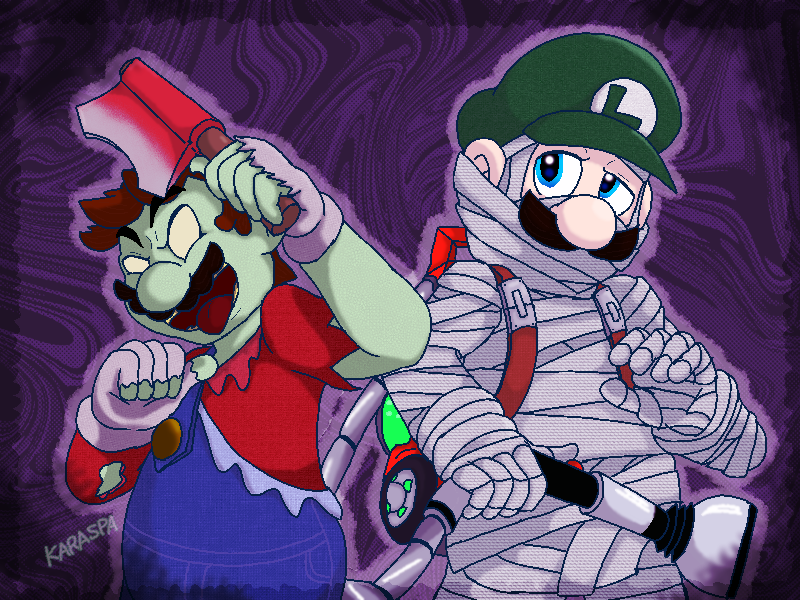 ちょっぴり怖めなコスチュームでキメるマリオさんとルイージくん!