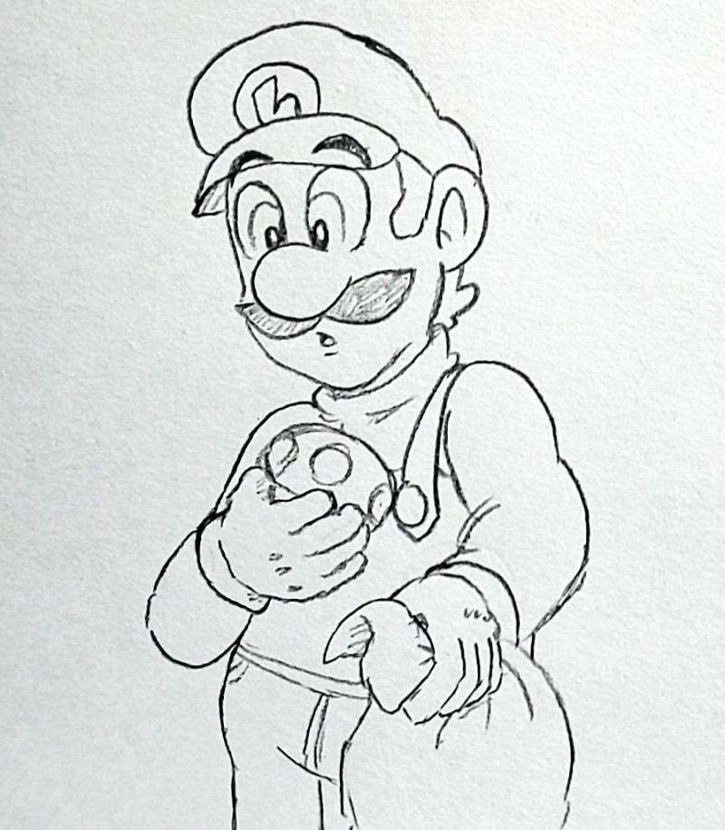スーパーマリオ(主にルイージ)、スプラトゥーン、ポケモン、Undertale、ミュータントタートルズ、原神中心にもぐもぐしてるお絵描きマン