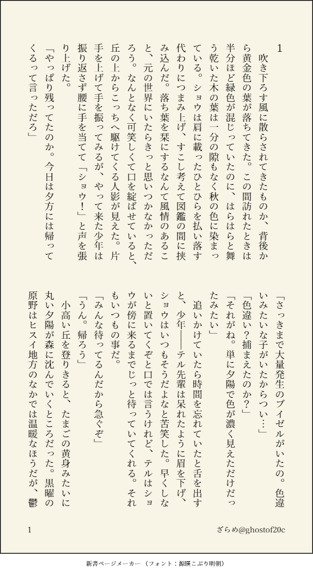ざらめ☆quiet followDONEレジェアル一周年記念(大遅刻)のウォロショウ。シンオウ神殿跡で起きたという奇妙な話を聞いたショウが、ふしぎな現象に巻き込まれウォロと再会する話。書きかけなので出来次第つづきを上げます。※2023/2/11 一部ミスがあり習性しました。 show all(+20 images) Tap to full screen (size:618x1132).Repost is prohibited Let's send reactions! freqpopularsnackothersPayment processing Replies from the creator Follow creator you care about!☆quiet follow ざらめDONE先代ラビアレの少女漫画的シチュエーションが見たくて書いたものその①お酒にめちゃくちゃ強い先代ラビは正直見たい。あと2本書く予定 24 ざらめDONEクリスマス二狗とかいう妄言。つき合う前くらいのイメージ 7 ざらめDONE映画を観てジュリアンに度肝を抜かれたので供養。本編後、ふたりで暮らしはじめるなか、ある事件を機に互いの隠していた罪と心を打ち明ける話。シリアスだけど最後ハピエンになります。本編後のふたりがくっつくまで何パターンでも見たい。 42 ざらめDONE藍渓鎮軸とWebアニメ時空を踏まえて、二狗が再会するとしたらどうなるだろう…という妄想つづき⑤。これでラストです。書ききれなかったシーンが多いから番外編もいつか書きたい。 23 ざらめPROGRESS藍渓鎮軸とWebアニメ時空を踏まえて、二狗が再会するとしたらどうなるだろう…という妄想つづき④。次で正真正銘ラストです 21 ざらめPROGRESS藍渓鎮軸とWebアニメ時空を踏まえて、二狗が再会するとしたらどうなるだろう…という妄想つづき③。次からやっと過去パートに入ります 18 recommended works mochencccDOODLE无良校医任职 2 sirome0_0TRAINING仙台でびっくりするくらいエスカレーターでは歩かないでくださいの表示があったので。 312 2D6_7DOODLE天使 ペンの試し書き nfila_namtanDOODLEMerry x’mas first draft okibaDOODLE雑クリスマス2024健全です落書きが五枚程度 5 ラピスDONE氷織くんと美しき蝶々たち sirokumahujyosiDONE4年越しに逆バニーDr.マンタ描くのリベンジ成功!!!!!!!!!18↑? yes/no たねいもPROGRESS✿😄✿✿ 一ノ瀬彩美DONEcolorfulで偽って