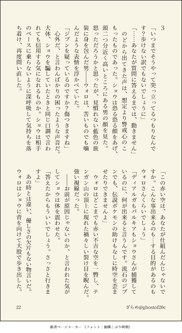 ざらめ☆quiet followDONEレジェアル一周年記念(大遅刻)のウォショ。打破事変から1年後、シンオウ神殿跡で起きたという奇妙な話を聞いたショウが、ふしぎな現象に巻き込まれヒスイ商人と再会する話の第二段。あと一章分くらいあります。 show all(+18 images) Tap to full screen (size:618x1132).Repost is prohibited Let's send reactions! freqpopularsnackothersPayment processing Replies from the creator Follow creator you care about!☆quiet follow ざらめDONE先代ラビアレの少女漫画的シチュエーションが見たくて書いたものその①お酒にめちゃくちゃ強い先代ラビは正直見たい。あと2本書く予定 24 ざらめDONEクリスマス二狗とかいう妄言。つき合う前くらいのイメージ 7 ざらめDONE映画を観てジュリアンに度肝を抜かれたので供養。本編後、ふたりで暮らしはじめるなか、ある事件を機に互いの隠していた罪と心を打ち明ける話。シリアスだけど最後ハピエンになります。本編後のふたりがくっつくまで何パターンでも見たい。 42 ざらめDONE藍渓鎮軸とWebアニメ時空を踏まえて、二狗が再会するとしたらどうなるだろう…という妄想つづき⑤。これでラストです。書ききれなかったシーンが多いから番外編もいつか書きたい。 23 ざらめPROGRESS藍渓鎮軸とWebアニメ時空を踏まえて、二狗が再会するとしたらどうなるだろう…という妄想つづき④。次で正真正銘ラストです 21 ざらめPROGRESS藍渓鎮軸とWebアニメ時空を踏まえて、二狗が再会するとしたらどうなるだろう…という妄想つづき③。次からやっと過去パートに入ります 18 recommended works mayamayapppDOODLEふいうち(付き合ってる侑日)私の脳内のヒナタはそんなに好き好き言わないんだけど、気持ちが溜まってきたときに突然言うから、ふいうちでツムが爆発する オタクくんDOODLE659。返り血を浴びまくっている 3 Hastur09DOODLE嘿,圣诞快乐 鬼忍者可愛いDOODLE⚠腐向け R15 少年⚠クリスマスも忙しく働きどおしで0時過ぎて帰ったらサンタ君がお布団温めてまっててくれました💛的な落書き 2024年も推しがかわいいー! おぼれTRAINING体外式ポルチオぐりぐり📱。🎈📱。 mct_ichiDOODLE刀さに30日チャレンジ 25日目分2600字⚠福さに 女審神者文庫8枚換算なので、読みやすいようにぽいぴくします。 2622 kon_rakuDOODLE護法跟蝦豹 2 mattsuxomatsuoDOODLE⚠️CoC『蟲も鳴かない』ややネタバレあり未通過の人❌サイコパス葬儀屋の奥津城にロックオンされちゃった矢田さん。 3 森野クマ3PROGRESS今日の進歩465あと一コマ描けば終わりだな
