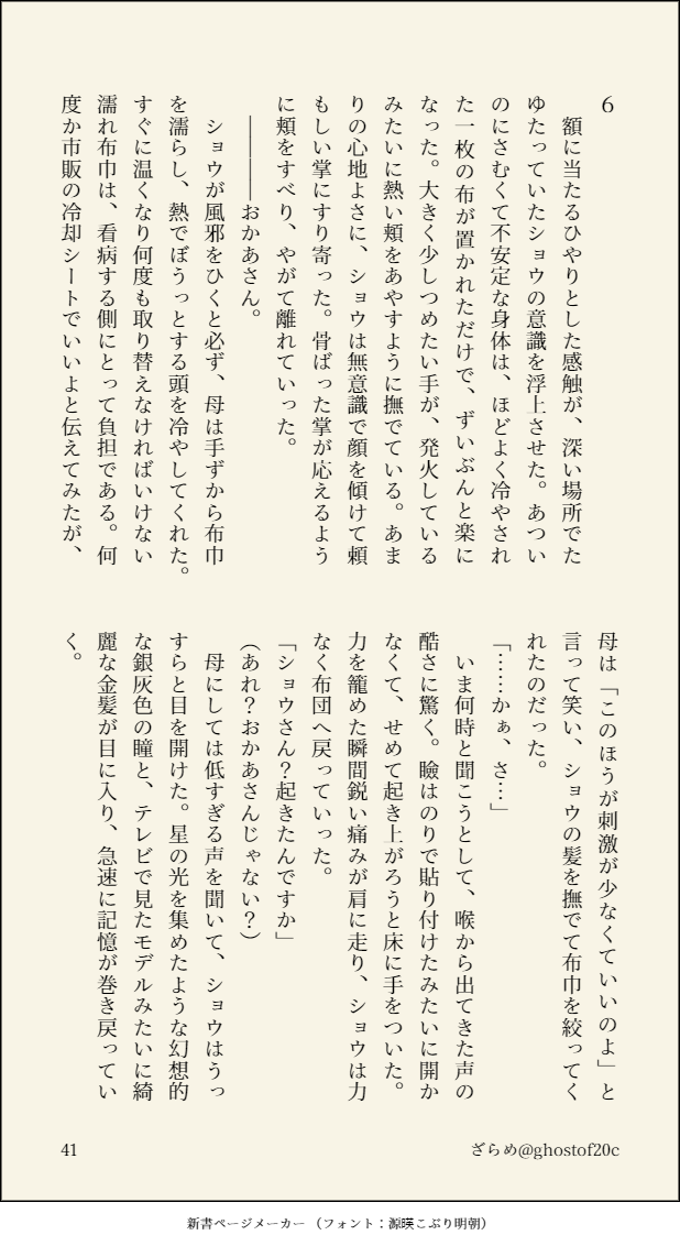 ざらめ☆quiet followDONEレジェアル一周年(大遅刻)のウォショ。打破事変から1年後、シンオウ神殿跡で起きたという奇妙な噂を聞いて異変に巻き込まれる話Part3。あと一章と言ったのに全然終わらなかった。次でさすがに最終章です。 show all(+17 images) Tap to full screen (size:618x1132).Repost is prohibited Let's send reactions! freqpopularsnackothersPayment processing Replies from the creator Follow creator you care about!☆quiet follow ざらめDONE先代ラビアレの少女漫画的シチュエーションが見たくて書いたものその①お酒にめちゃくちゃ強い先代ラビは正直見たい。あと2本書く予定 24 ざらめDONEクリスマス二狗とかいう妄言。つき合う前くらいのイメージ 7 ざらめDONE映画を観てジュリアンに度肝を抜かれたので供養。本編後、ふたりで暮らしはじめるなか、ある事件を機に互いの隠していた罪と心を打ち明ける話。シリアスだけど最後ハピエンになります。本編後のふたりがくっつくまで何パターンでも見たい。 42 ざらめDONE藍渓鎮軸とWebアニメ時空を踏まえて、二狗が再会するとしたらどうなるだろう…という妄想つづき⑤。これでラストです。書ききれなかったシーンが多いから番外編もいつか書きたい。 23 ざらめPROGRESS藍渓鎮軸とWebアニメ時空を踏まえて、二狗が再会するとしたらどうなるだろう…という妄想つづき④。次で正真正銘ラストです 21 ざらめPROGRESS藍渓鎮軸とWebアニメ時空を踏まえて、二狗が再会するとしたらどうなるだろう…という妄想つづき③。次からやっと過去パートに入ります 18 recommended works zhiqin57715870DOODLE青坊主猛火爆炒夜叉 4 SamaelDOODLE愚勘 thrills_tDOODLEI'm fvcking horny 4 ゆらぐDOODLE金国 ⚠︎女装 mahatatatata_29MEMO▍𝐂𝐚𝐥𝐥 𝐨𝐟 𝐂𝐭𝐡𝐮𝐥𝐡𝐮 «もし、明日がくるなら»𝗣𝗖/𝗣𝗟:夏目 虹/梨木カルテ 早守 愛都/まはた➤両生還 シナリオクリア2024.12.25 葡萄汽水甜年年DONE主要角色死亡预警 3468 chloris0906DOODLEcoc6「とんてんころり」作 紅梅様PL/PCユズキ様/源川 香澄KP/KPC黎利水ちくわ/八尺 みのり_______________シナリオクリア chancharonepDOODLEプリティ~ 35 にゃにゃんこDONEリクエストのぱんティちゃんありがとうござましたガイドティファちゃん大好き!下描きの時に変態っぽくなったものも添えて…笑 4