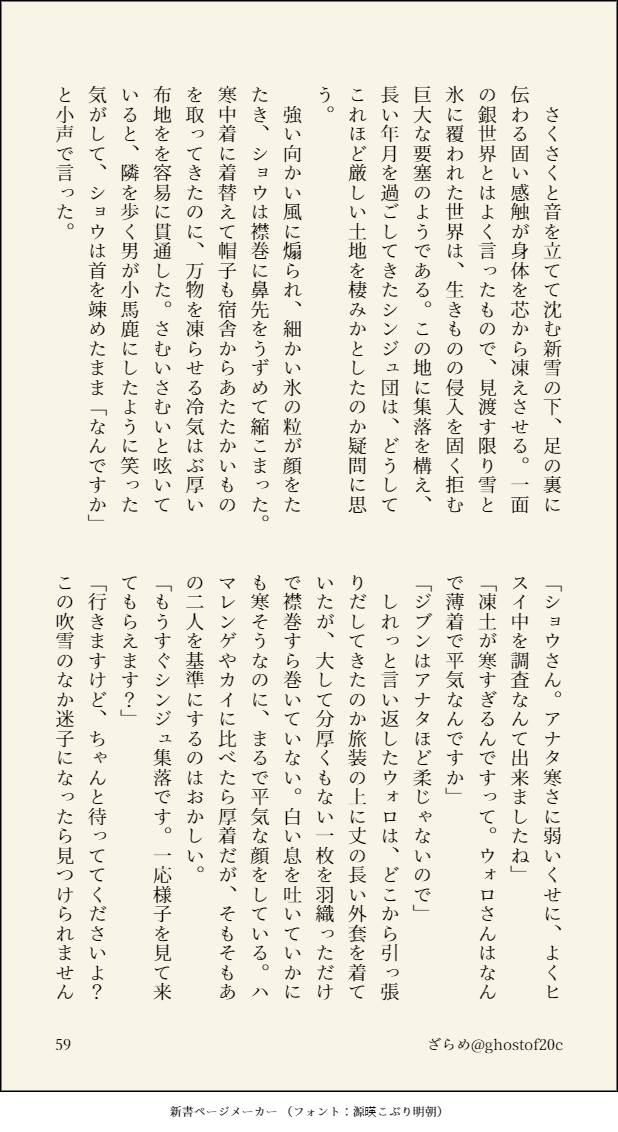 ざらめ☆quiet followDONEレジェアル一周年記念(大遅刻)のウォショ。打破事変から1年後、シンオウ神殿跡で起きたという奇妙な話を聞いたショウが、ふしぎな現象に巻き込まれヒスイ商人と再会する話。今回で最後です。念願のハピエンが書けて満足。 show all(+29 images) Tap to full screen (size:618x1132).Repost is prohibited Let's send reactions! freqpopularsnackothersPayment processing Replies from the creator Follow creator you care about!☆quiet follow ざらめDONE先代ラビアレの少女漫画的シチュエーションが見たくて書いたものその①お酒にめちゃくちゃ強い先代ラビは正直見たい。あと2本書く予定 24 ざらめDONEクリスマス二狗とかいう妄言。つき合う前くらいのイメージ 7 ざらめDONE映画を観てジュリアンに度肝を抜かれたので供養。本編後、ふたりで暮らしはじめるなか、ある事件を機に互いの隠していた罪と心を打ち明ける話。シリアスだけど最後ハピエンになります。本編後のふたりがくっつくまで何パターンでも見たい。 42 ざらめDONE藍渓鎮軸とWebアニメ時空を踏まえて、二狗が再会するとしたらどうなるだろう…という妄想つづき⑤。これでラストです。書ききれなかったシーンが多いから番外編もいつか書きたい。 23 ざらめPROGRESS藍渓鎮軸とWebアニメ時空を踏まえて、二狗が再会するとしたらどうなるだろう…という妄想つづき④。次で正真正銘ラストです 21 ざらめPROGRESS藍渓鎮軸とWebアニメ時空を踏まえて、二狗が再会するとしたらどうなるだろう…という妄想つづき③。次からやっと過去パートに入ります 18 recommended works astro_moimoiDOODLE🐟👔🐟3P ハルギリDOODLE糖度高めというか冬のほさほよネタバレないよ〜 4 水底流-FLOWDOODLEサマイチ mochencccDOODLE姜涵的史莱姆研究 3 _codetan_INFO【人の心は妖面の如し】12/25KP:冬真Ho壱:こまの(凩 零)Ho弐:巳田巴(天狗山 小鳶)Ho参:コデッタ(夜叉)Ho肆:奏河(黄榮 与)#コデ卓報告行ってきました!PCのやりたいようにやらせていたら、PLはヒヤヒヤでしたそして自陣に絆され救われました…夢が叶って良かったねお世話になりました!感謝感謝!そしてこれからもお世話になります!※2枚目以降ネタバレ注意 9 🍔🍔🍔PASTcp:兼兼password🔑:和泉守兼定刀帐番号(極+初) 11 gainen_____SPOILER千奈親愛度16話バレ藍井撫子さん、良 アオキノコDOODLE映画で気が狂ったのでほとんど土井先生映画のネタバレは無い※土井←尊含む再燃して久しぶりにちまちま観直してるけど何億回見ても30期はすごい 15 にゃにゃんこDONEリクエストのぱんティちゃんありがとうござましたガイドティファちゃん大好き!下描きの時に変態っぽくなったものも添えて…笑 4