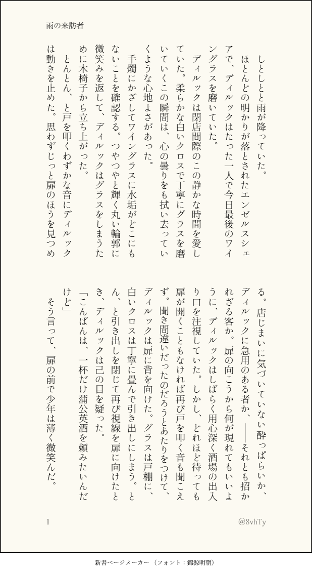 とある旅人の話 ああ。こんにちは、旅の人。まさかこんな森の奥で人に会うなんて。ここはボクの臨時拠点だよ。よかったら少し休んでいくといい。いまホットミルクをつくったばかりなんだ。一杯どうかな。要らない? そう。
