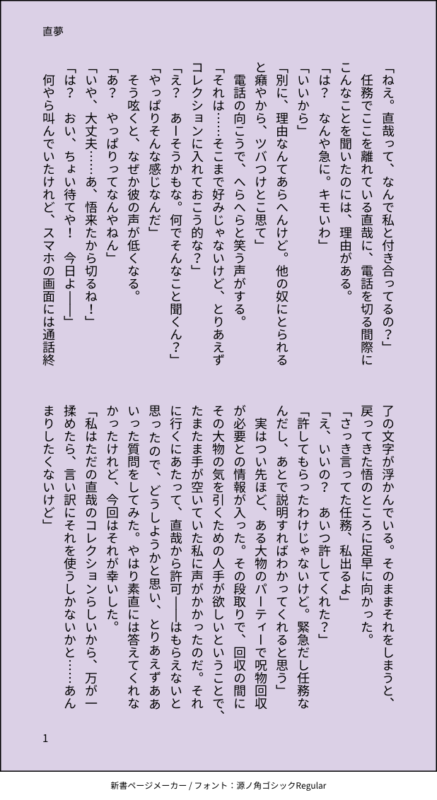 no name☆quiet followDONE呪術夢【直夢】大事な日を忘れてしまった🌸と🌸を助けにくる直の話 ##小説 show all(+5 images) Tap to full screen (size:618x1132).Repost is prohibited Let's send reactions! freqpopularsnackothersPayment processing Replies from the creator Follow creator you care about!☆quiet follow no nameDONE足ワンクッション no nameDONEバニー夏。2枚目は性癖に素直な差分です 2 no nameDONE呪術夢夏夢漫画(固定夢主顔あり) 6 no nameDONE【夏夢】祓本夏の心i霊iロiケで、夏と怪i事に巻き込まれてしまった夢主の話 12 no nameDONE【直夢】直が気に入りの女i中🌸にピiアiスi穴を開ける話 5 no nameDONE【夏夢】レンiタル彼i氏の夏に引っかかった話*夏だけ転i生i前記i憶あり(転i生i前→原i作i世i界i線)*なんでも許せる人向け*愛が重くも見える 12 recommended works みつるTRAINING呪術伏黒恵くんすきですね しみ紙(油紙)MAIKING花御が好きで全巻買ったら塵も残さずアレがアレで五条君マジで…というショックのままかきました みつるTRAININGイケメン眼鏡先輩 774DONE カリンパ㊷MEMO🐯 caltDOODLEさしす fuji_121DONE五条悟と仲間達の存在しないウスイブック no nameDONE呪術夢誤爆で、フェチと一緒に好きバレしちゃった🌸夏(高専)|虎|伏|五 4 大魔王くんDONE「①元の鞘に納まる話」※5️⃣夢※夢/捏造有/拙い文章/原作の時系列に沿ってます/原作のセリフ有/何でも許せる方だけお読み下さいませ。夢主視点から始まります。また続きは②で投稿致します。 43