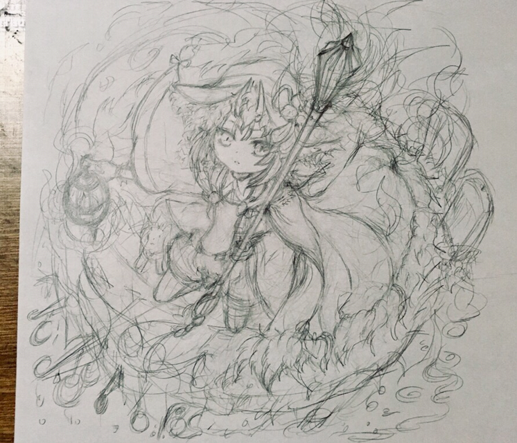 昨日の描き続き。レアリティがアップした!と言いながら描いてる。