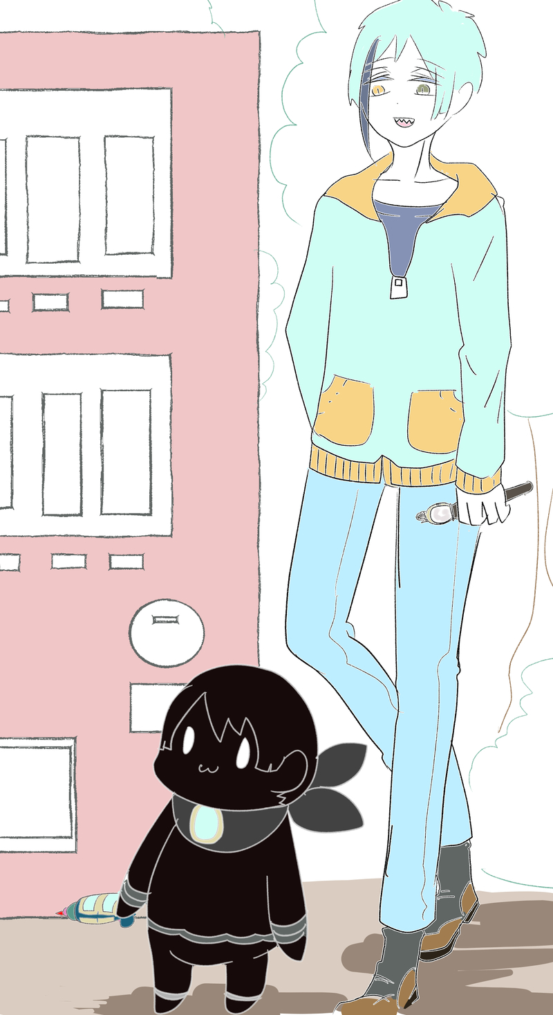 宇宙船に何かがドーンとぶつかってツイステ世界(?)に不時着してしまった真っ黒もちもち宇宙人。森の中で出会ったリーチ兄弟の力を借りつつ、大事な部品を探し出して宇宙船を修理しよう!という、大体ピ●ミンぽいような感じの夢を見て、ふわっと思い出しながら描いたらくがき。