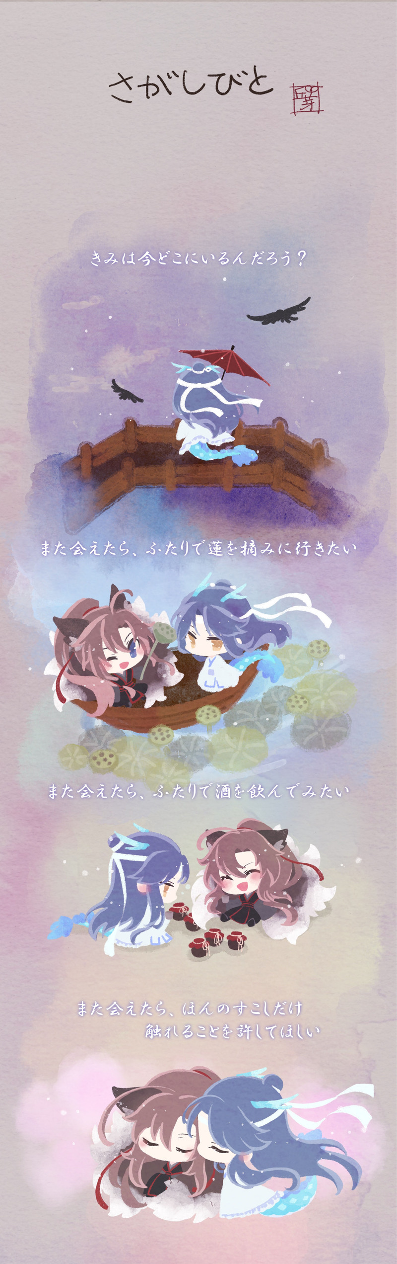 Nyano☆quiet followMOURNINGMDZS交流会展示作品 #忘羨 WangXian show all(+1 images) Tap to full screen (size:1913x6083).Repost is prohibited Let's send reactions! freqpopularsnackothersPayment processing Replies from the creator Follow creator you care about!☆quiet follow NyanoPROGRESS文字は最後に打ち込みます(読みづらくてごめん) 18 NyanoDONE🌸🐠四季巡り🍁🌟3D資料→https://sketchfab.com/OkameMiko(3D化にあたって見栄えがいいように多少デザイン調整してます) 12 NyanoDONEウォショメインイラストまとめ(新規絵は後ろに足していってます) 22 NyanoMOURNINGMDZS交流会展示作品 2 NyanoDONE◆紫雨さん主催の企画「みんなのSSで忘羨二十四節気」の秋分を担当させていただきました。ひたすら好き好き言ってるだけの忘羨だよ!原作終了後想定。●pass 忘羨の初キス場所=○鳳山(○に入る漢字1文字) 8 NyanoDONE一次創作CPのクラリアちゃんSSpass:うちの氷竜の名前を英語の小文字で 3159 related works kd1ty4_ko_2MAIKINGNLでも描いたことなかった肌色系、描いてみたいと思わせる魔道祖師(忘羨)、恐るべし笑完成するかどうかは不明😂 え ちDONE『望現』2022.10.31魏嬰お誕生日おめでと〜!原作後番外編らへんのお話。誕生日の話ではないですが幸せを願って。 19 西村ルルMOURNING書けないから供養。長い設定つき。現代AU、男子校パロ。魏嬰が藍湛の🍆を口にする描写があるので、R18にしています。乳首触ったとこから進まず、途中放棄してしまいました😂 1804 hacca56807070SKIP BEAT🐰フィナンシェと忘羨 とさみくMAIKING はゆやSPUR MEオメガバース忘羨匂わせ程度のすけべな描写あり設定はこちらhttps://twitter.com/soushokukoebi/status/1483004515385507840?s=21 2605 あおなすMAIKINGとりあえず塗れた。 とさみくDONE 2 ごーるDOODLE待ちぼうけ⚠︎Attention⚠︎全て個人の妄想によるフィクションです。実在の人物・団体・事象とは一切関係ございません。無断の転載を固くお断りします。It's all an individual fantasy fiction. 藍湛の悪夢。ハピエンです!!阿令設定ですがまどそしでも。痛いほどに、愛しく思う。 9 recommended works 👻💨MOURNING『スプリング・レイ』上京を決めたまぼとの某日。本当はずっと傍に居たい者同士の葛藤。青年の回想。※ 『余夏の回想』が下敷きになっています。-----某曲に寄せて。歌詞をそのままに、どうしても描いておきたかったお話(だけ)を認めました(シリーズその2)。特に山もオチもございません…。 5 りんこPROGRESSグッズ用ねこみやさん。 あやきDONE誕生日お祝いに描いてたけど誕生日に間に合わなかったやつ。藍湛お誕生日おめでとうございました namaniesanDOODLEこれも新しいペンをDLしたのでらくがき。前のらくがきで、前で帯解けるやん!て言ったので、帯ほどき老祖様… きゅーDONEss"子守唄を聴かせて"後日譚再会したふたり。 4 せきたDOODLE叔父甥 2 Kk_moon2307MAIKING忘羨ワンドロワンライ(@1hour_mdzs)から拝借のお題【AU】で【現代AU】です。苦手な方はご注意下さい。兄姉の呼び方を少し変えてます。Twitter上では途中の途中でばらけてupしてしまったのでこちらに置いておきますが、完全完成形はpixivに上げる予定です……🙇一時間で完成させるのは難しいなあ…… 2748 @甘沢CAN’T MAKEちゅっちゅしそうでしないシーンの練習 HellingLaozuSPOILER「四文字名前」韓国のオフラインイベントに出した原稿のウェブ公開です。日本語訳頑張ってみましたが、やっぱり間違ったとこあるかもしれません^^; よろしくお願いいたします。#MDZS #魔道祖师 #忘羨 #WangXian 21