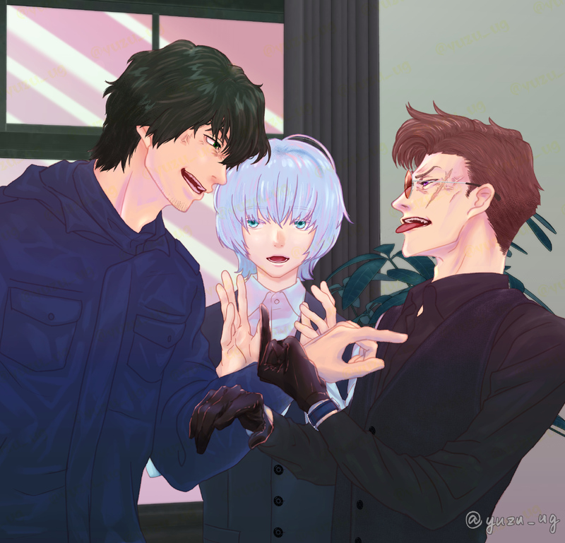 しゃめさん(@aoharuaruka)ちのオリバー・メイ・ピーシーズくんと、えびさん(@C_tttk)ちの雛芥子桔一チーフ