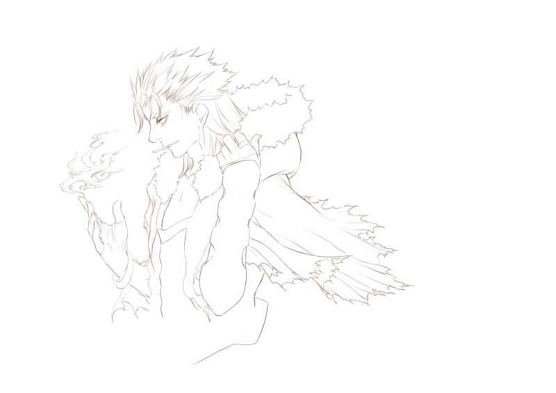 着彩開始。まずはラインをクリンナップ。