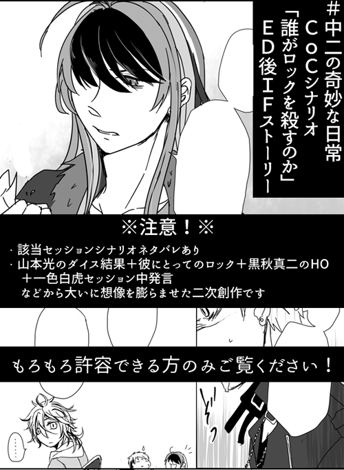 510yade☆quiet followSPOILERネタバレと妄想しかないG!BLTのその後 けっこうシリアスです ドンくんが1コマしか描けなかった… #中二の奇妙な日常 show all(+7 images) Tap to full screen (size:500x682).Repost is prohibited Let's send reactions! freqpopularsnackothersPayment processing Replies from the creator Follow creator you care about!☆quiet follow 510yadeDOODLE前白虎くんのを作ってもらったときとっても楽しかったので…つい… 510yadeSPOILER一回G!BLTとこの朝のコラボを妄想してしまってから真二もそこに加わってほしいと妄想した結果彼女に関しては毎回心を痛めていたので声が良い誰ロクではこうやって拾い上げてくれたの感動しましたありがとうの気持ちも込めて… 2 510yadeDOODLE知人が推しで作ったと聞いて自分もきっくんで作りたい!と思っていただけのはずが「G!BLTのも…作れるってこと…?」と気づいてしまいやってしまいました白虎くんイメージ香水。神戸の「Dance」さんで対面カウンセリングにてお願い致しました。ネットでも注文できるけど数か月待ちの人気とのこと すごい 510yadeSPOILERネタバレと妄想しかないG!BLTのその後 けっこうシリアスです ドンくんが1コマしか描けなかった… 8 510yadeSPOILERずっとちょっとずつ描いていたのがようやくできましたラストバトルのダイス結果が毎ターン本当に熱い… 7 510yadeDOODLECV.FB777というだけでかおすちゃんと山本光を軽率に並べました related works esuna_msp_eSPOILER※ネタバレ注意?事件の後の話です。ある曲を聴いたら久々に浮かんできたので、書きました。葛藤を抱える光さん。イメージ曲はOver Forteさんの『或る空想家の情景』です。この曲はG!BLTが歌っても映えると思います。 5 antcamepepepoDOODLE #中二の奇妙な日常山本光と一色白虎のドドド創作 若干ご本人ネタがある 4 Tano185SPOILER #中二の奇妙な日常このくだり大好き Mikoton_doriASPOILERNPCの優しげなあの方です。いや、もう、恋をしました。このアカウント初のイラストだね。愛した。末永く息をしていてほしい。愛。#中二の奇妙な日常 kiotro3DOODLE #中二の奇妙な日常 ナナシSPOILER #中二の奇妙な日常こんぶ soba_hazimeDOODLE幻覚100%であみあみしてる 2 Tano185SPOILER #中二の奇妙な日常ここ好き しらすの投げこみ倉庫SPOILERWho are you?#中二の奇妙な日常 完全にネタバレしかも本編に無い