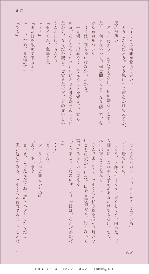 hotmilk0901☆quiet followDONEイラストでいう落書き的な文章。𓆩✧︎𓆪🌟です。嫉妬𓆩✧︎𓆪くん妄想。若干メタい発言(デイリーなど)があります。全年齢向け。今回はえろ成分ありません。 show all(+2 images) Tap to full screen (size:618x1132).Repost is prohibited Let's send reactions! freqpopularsnackothersPayment processing Replies from the creator Follow creator you care about!☆quiet follow hotmilk0901DONEやっと終わったよりおひか。書き上げてもうこのままふたりはセフレでいいんじゃねぇの、ってなってるわしがいます。あと多分過去一文量長いえろになった気がする。これ以上のものフィドレイで書けるか不安になるレベル……。 8 hotmilk0901MAIKING間に合いませんでした( '-' )続きは書けたらこの投稿にくっつけます。りおひか昨日の続き。ひかくん裸だからポイピクポイです。 4 hotmilk0901MOURNING没𓆩✧︎𓆪🌟ちゃ 5 hotmilk0901MOURNING没ヒスイとルチェとレイラ中身うっすい会話してる 5 hotmilk0901MAIKINGいつだかの補完部分の前半? フィドレイ途中も途中だけど、続きいつになるかわからんからここまで上げとく(無駄に長い)ツイートしたんだけど、センシティブ設定反映されなかったからポイピクにポイ 5 hotmilk0901DONEずっと放置してたあの晩のぴあにい視点。おさななはカリン以外は名前とか一言くらいしか喋らんかも。メインはぴあにいとカリン。 7 recommended works ありありありおMOURNINGなんちゃってバニーのリとお金をねじ込みたいヌ Na9isAMOURNINGアナログ+顔想像で描いてます苦手な方はご注意ください... ゆきひとDOODLE鉢雷/そういやこの二人って普段一緒に風呂とか入っ…… Shamari_TRPGINFOcoc 二人の昼食未来図月野ルネ様 作両生還KP/KPC:緋雨 様/冬凛 様PL/PC:シャマリ/秋野 菊路「美味しい、また沢山食べような」 2 さかなDOODLEDATE:2023/5/21~ コラサンドされロ※コラさん2人・初期案コラさん注意🔑pass word:コラロの日の数字(4文字) 3 6ka_1DONE班マフィ本1冊め『元◯◯な班長さんとつれないマフィア(仮)』のリライト再録①「人は見た目が◯割」「その夜のはなし」・班長さんの一人称が俺⇒おれ・ちょこちょこ修正・同人誌掲載のタイトル画像はありません加筆修正前のものはpixivに全文掲載していますhttps://www.pixiv.net/novel/series/1052682 18 garbocy_nsfwDOODLE喵喵喵 4 さかなDOODLEDATE:2024/9~2025/1 ログまとめ 8枚🔑pass word:コラロの日の数字(4文字) 8 思春期DOODLE添楓 R-18👔の落書きです。どっちを描くか悩んだので両方描きました。ネクタイで縛ってたり目隠ししてたりするので気をつけてください……pass:18↑(y/n) 2