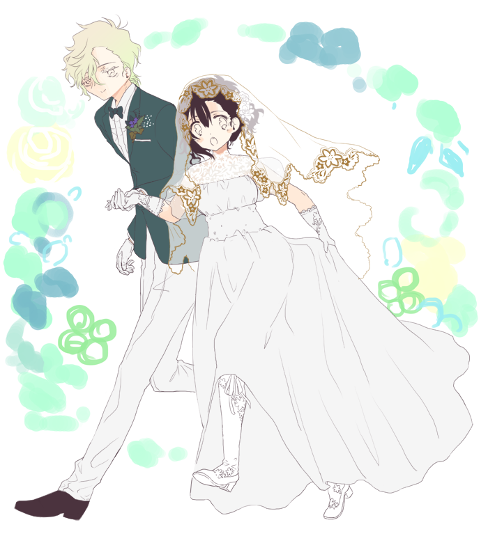色分けがなんとか終わった(背景は入れたいウェディングフレームのを想定してるのでイラストに添えるかどうかはちょっと謎)