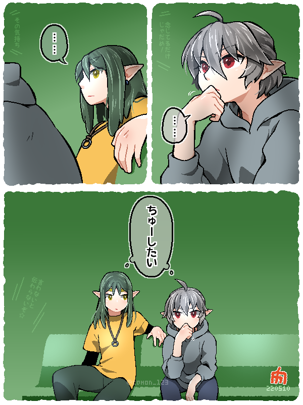 緑髪×銀髪 魔族×人魚