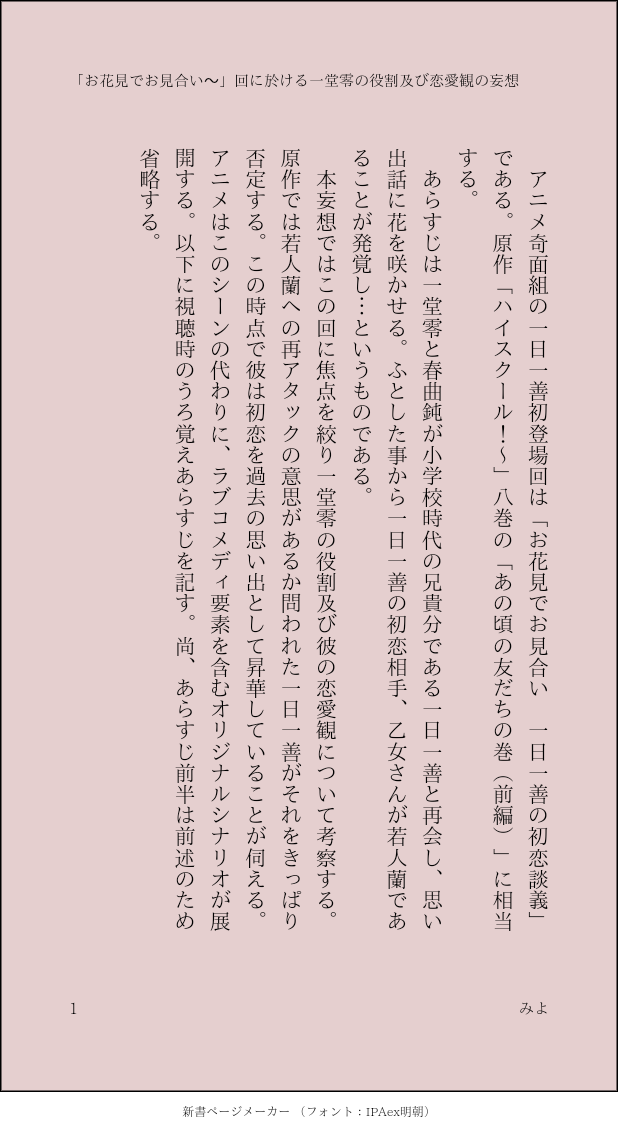 みよ.☆quiet followMEMO ##こじつけ妄想アニメ某回ネタ show all(+4 images) Tap to full screen (size:618x1132).Repost is prohibited みよ.DOODLE学校用テンションの事零とプライベートテンションの事零の高低差で風邪ひきたいや、プライベートが低いわけではないけどコミカルで非日常な印象から急に現実に引き戻される感覚がありそうでたまらない みよ.DOODLE生徒に初めて(の車)をめちゃくちゃ(廃車)にされた教師嘘ではないが字面がすごいな最近流行りのやつの妄想がぱっと思い浮かんで、久々に絵描いたらなんか元気出てきた 2 みよ.DOODLE推CPセルフセラピー暫く絵を描いてない状態から発作的に描いたので零さんの左腕が透けている みよ.DOODLEレオ騒動編で株上がったよね橘先生のクール系or高飛車系女の子好きです※ みよ.DONE2025年もよろしくお願いいたします※ 2 みよ.DOODLEこういう…一見アレだけどどこまでも健全でかっこいいのよな recommended works こうげつ萌え絵落書き置き場MOURNING伊狩せんせと石砂せんせを描いてから始まった集合絵。これ以上はどうにもならず、止まってしもうたあっちゃー。ということで、ここで供養します。#奇面組 こうげつ萌え絵落書き置き場DOODLE待ち合わせ、の小話。#奇面組 #石増 4 こうげつ萌え絵落書き置き場TIRED季節外れのポッキーゲーム。あるいは酔っ払いに振り回される一人の男の巻。※「にひぃ」のあと、一つ絵をぶっ飛ばしてます。次の投稿絵を脳内で突っ込んでやって下さい_(:3 」∠ )_#奇面組 #伊狩増代 #石砂拓真 #色音好 #石増 #酔っ払い増代 #ポッキーゲーム 27 こうげつ萌え絵落書き置き場MOURNING「ハイスクール!」1巻の、伊狩せんせと若人せんせの若かりし頃を試しで描いてみたんだけど、なかなかうまくいかないね。#奇面組 #伊狩増代 #若人蘭 こまつ♡PAST #奇面組潔くんはいい男だと思う。 こうげつ萌え絵落書き置き場DOODLEもしかしたら僕ぁ、手に入れたのかも知れないなぁ。一番、欲しかったモノを。#奇面組 #伊狩増代 #石砂拓真 #色音好 ##伊狩せんせと石砂せんせと色音せんせ こうげつ萌え絵落書き置き場DOODLE「フラッシュ!奇面組」より、雪だるま作り大会の前日と、祭りが終わった後(笑涙)この話って、石砂せんせがトドメを刺したんだよなぁ。再読してた時に冒頭の二人のシーンに萌え萌えしてたらあのオチにびっくらこきましたよ(ノ∀`)まあ卒業式のあれそれこれで帳消ししましたが(・∀・)#奇面組 #フラッシュ!奇面組 #伊狩増代 #石砂拓真 #石増 2 こまつ♡DONE #奇面組チャコ♡あるフォロワーさんが語られたのですが、零さんは唯ちゃんとチャコとも結局は結婚しないけど、予想外の人と結婚して幸せにくらし、たまに唯ちゃんとともに若い頃を思い出しているというお言葉にジンと来ました。零さんがチャコと破局を迎えるとしたら、チャコが子供時代の自分にきちんと終止符を打って自分の自立を考えた時じゃないかな。自分にとって子供のままでいてくれる女の子が女の人になった途端に 双葉@ぼちぼちアップしてくDOODLEチェ(先天性男)レオ。このカップルは、いいよ…!!どんどん描きたいカップリングだよ…!!
