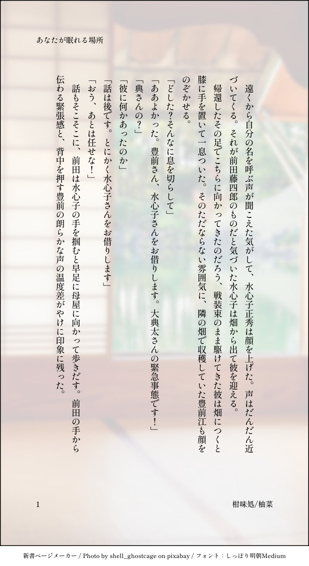 当初は寝不足不機嫌の光世さんに膝枕でも、と考えてたんですが前田くんが風呂敷を広げてくれたのでちょっと大きくなってしまった。そのうち書きます