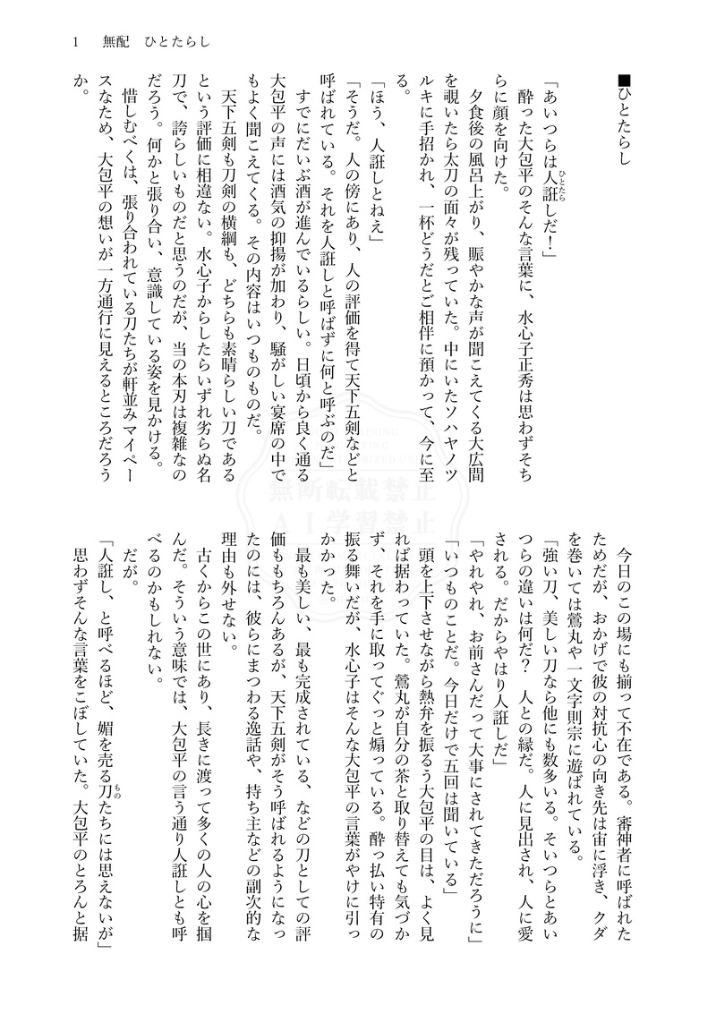 citronius☆quiet followDONE◇ひとたらし1/26(日)閃華の無配予定、でした。ひとたらしのみつよさん祝装良すぎたねという話 #典水 pawnWater show all(+3 images) Tap to full screen (size:1750x2479).Repost is prohibited Let's send reactions! freqpopularsnackothersPayment processing Replies from the creator Follow creator you care about!☆quiet follow citroniusPAST◇想いの測り方1月のイベント後通販のBOOSTお礼でした。ありがとうございました!アレの大きさはいかほどか、っていうほんとにしょうもないお話です。水心子くんのことは好奇心で痛い目に遭うネコチャンだと思ってる節があります。 5 citroniusPAST◇みちしるべ修行に出た大典太を想う水心子くんと、前田くんのお話。2024年の7月に出したものを、修行一周年に合わせて再掲。信じて待てども心は揺れる。その帰りを心待ちにして。 6 citroniusDONE◇Melty melty Morning2月のひらブーに載せたもの。冬の朝の二度寝の典水ちゃん 3 citroniusPAST◇心が想う先は兄弟に報告する大典太さん。「ひかり」の続き0126発行「想いの咲花・下」に収録した「想いと、拳と」の導入でもあります。 2 citroniusDONE◇ひとたらし1/26(日)閃華の無配予定、でした。ひとたらしのみつよさん祝装良すぎたねという話 4 citroniusPAST◇いつかの極薄0.01ミリ10月のスパーク後のBoostお礼の小話でした。ありがとうございました!お礼がこんなのでいいのかっていう、こっ恥ずかしいしょうもないギャグですいません。書いてる途中で大典太さんがちょっと可哀想に思えたんですが、そこもまた愛嬌ということで。 5 related works n_agio666REHABILI光世と水心子が元々できちゃってる本丸という感じで見てもらうしかない(?)非常に頭悪そうなIQ3レベルの典水漫画を描いてしまった。もうね、孫六さんありがとうございます。好きなタイプでした。波乱!!!!!! 10 yokubuka_snwDOODLE癖詰め込み※典水⚠️18↑? きゅうりDONE水心子うさぎバグ🐰典水🔞典「あんまりかわいかったからつい…」ちゃんと…描いた……お手柔らかに……🗝……典水刀帳番号続けて5桁 4 きゅうりDOODLE典水ドライハンプチャレンジ💪😌🩶💜すりすり……ゴリゴリ……♡ 2 百音モネDOODLE※典水 ※R18色々不勉強ですが勢いで描きましたワァ~~……!190cmの天下五剣は……受け入れるのとんでもなく大変だろうなって……思いながら…… ちゃきなこDOODLE典水典水典水〜〜描いた🔞❓→yes/no citroniusDONE◇Melty melty Morning2月のひらブーに載せたもの。冬の朝の二度寝の典水ちゃん 3 きゅうりMOURNING昨晩🔞描いてみたけど恥ずかしくなっちゃってこれ以上描けそうにないのでここに供養🗝……典水刀帳番号続けて5桁 2 chizuuu03DOODLE821の日なので🦊🐰典水でいちゃこら※👯はいません※フェ⚪︎ありのため🔞※ケモ耳です鍵 成人済み→ y