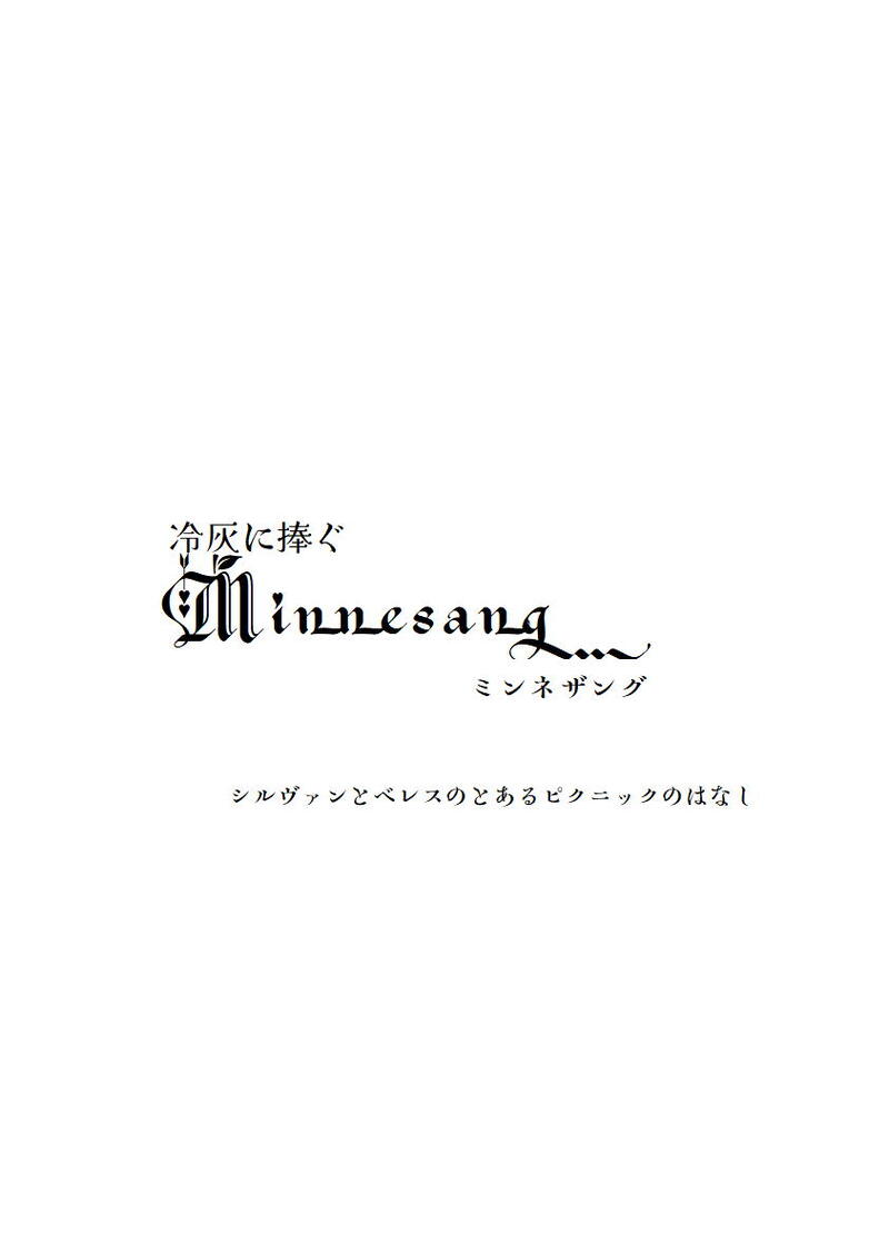 以前発行した無双シルレス本「冷灰に捧ぐミンネザング」の前日譚で、公開済(書きかけ)の短編「シルヴァンとベレスのとあるピクニックのはなし」の修正、加筆版です(この期に及んでまだ書きかけ!!続きはまた書けたら公開します…)