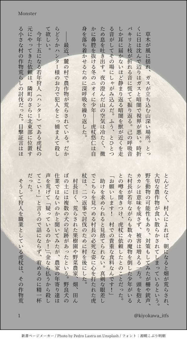 清 川☆quiet followDONEハロウィンネタで狩人虎杖くん×ポンコツ狼男の伏黒くんの話。記憶があるとない。 show all(+8 images) Tap to full screen (size:618x1132).Repost is prohibited Let's send reactions! freqpopularsnackothersPayment processing Replies from the creator Follow creator you care about!☆quiet follow 清 川DOODLE⚠️痴漢される伏黒くん 虎伏前提モブ伏(虎伏公衆トイレわからセッ) 痴漢注意 1382 清 川MOURNING2023.3月に発行した『insert』にブーストしていただいた方にお礼として同封した小話。アップするにあたり、少し修正しました。そして、小悪魔✖️小悪魔とは名ばかりで外でイチャラブしてるだけ。パスワード→y/n + 虎伏の数字三文字(合計6文字) 5122 清 川MAIKING12月の無配。ちょっと修正しました。 5 清 川PROGRESSアイドル虎杖くん×作詞家?伏黒くんまだ出会ってない 8147 清 川DONEハロウィンネタで狩人虎杖くん×ポンコツ狼男の伏黒くんの話。記憶があるとない。 9 清 川MEMOアダルト会社に勤める虎伏の話開発部虎杖くん×被験者伏黒くんpass➡︎18歳以上ですか?(y /n) 1920