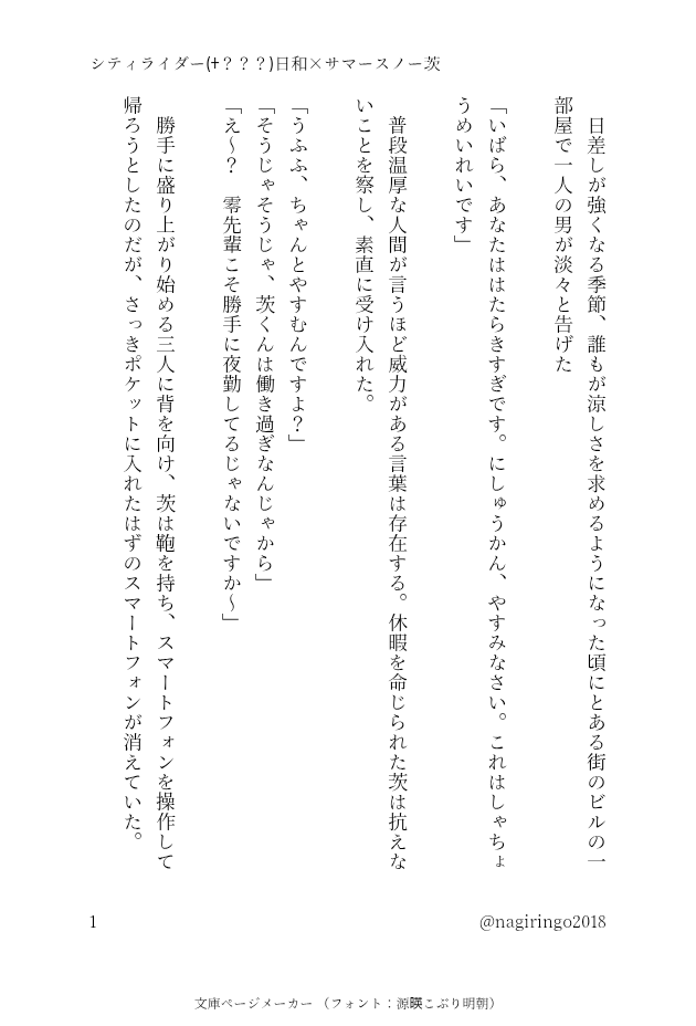nagiringo2018☆quiet followMOURNINGパロなひよ茨(してぃらいだ〜+???×さま〜すの〜) さますの3人+🍓/🍑/🏹くんいます。苗字無し呼び方変更有/勢いで全てかいてます。 ##小説 #ひよ茨 show all(+11 images) Tap to full screen (size:630x928).Repost is prohibited Let's send reactions! freqpopularsnackothersPayment processing Replies from the creator Follow creator you care about!☆quiet follow nagiringo2018DONEお題 ヘアアレンジ⚠️一部匂わせの表現がありますがご想像におまかせします…⚠️@hyib_1h#ひよ茨ワンドロ・ワンライ 3 nagiringo2018DONEお題 珈琲⚠️ギャグです@hyib_1h#ひよ茨ワンドロ・ワンライ 4 nagiringo2018DONEお題 可愛い人@hyib_1h#ひよ茨ワンドロ・ワンライ 3 nagiringo2018DONEお題 ネイル@hyib_1h#ひよ茨ワンドロ・ワンライ 2 nagiringo2018DONEお題 涙⚠一部メタいネタがあります@hyib_1h#ひよ茨ワンドロ・ワンライ 3 nagiringo2018DONEお題 オーダーメイド時間配分ミスっていつも以上に白めです🙇@hyib_1h#ひよ茨ワンドロ・ワンライ 4 related works nagiringo2018DONE🐻❄️☀くん×🚂🔥🐍くんパロ (ふたりともにんげんじゃない) 10 MiwMilkteaDOODLE⚠️ひよ茨 2 nagiringo2018DONEお題…寝顔#ひよ茨ワンドロ・ワンライ @hyib_1h れねっとDOODLEホワイトデーEdenマンガ【雑】 4 yuzu_riha1100REHABILI妄想大人ひよいば snowcamelia02DONE名刺メーカー使ってみたくて書いたひよ茨SS。ついったにあげたものですが備忘録がてらこちらにも。ナチュラルに同棲しています。 nagiringo2018DONEお題…電話+数分⚠両思いばかっぷる#ひよ茨ワンドロ・ワンライ@hyib_1h 5 うときPROGRESS【凪茨♀️・ジュン茨♀️・ひよ茨♀️】Q/Alia(クアリア)[クオリア(Qualia)]感覚的な意識や経験のこと、また意識的・主観的に感じたり経験したりする質──「どうなってもいい関係になりたいんです」心の歪みから狂った関係に堕ちていく、凪砂・ジュン・日和の話。※キャプション・更新についてはTwitterの固定ツイートを参照してください(更新途中であれば含まない可能性もあります) 3194 nagiringo2018SPOILERひよいば新刊のネタバレあとがき裏話的なやつです。新刊は全年齢ですが、こちらは18↑の方のみ。パスは新刊の最後のページのパス(半角数字4桁のやつです)+yes(半角小文字)R18理由は裏話の話題が一部年齢制限ゲームの話だからなのでエッッッはないです。 ないんです。 6