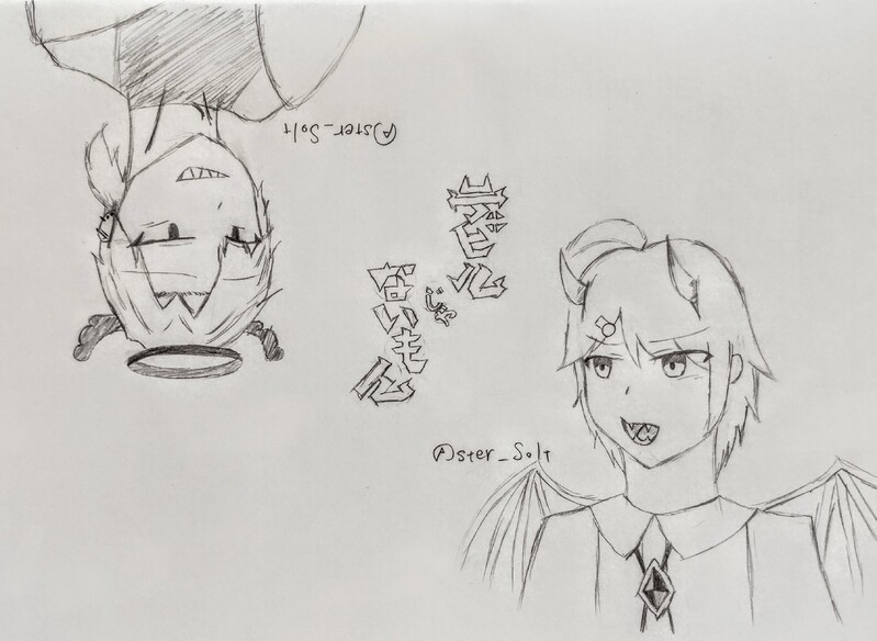 シナガワのサトナとカリナタで😈じゃないやつやりました 正直雑だし色を塗る気は起きない