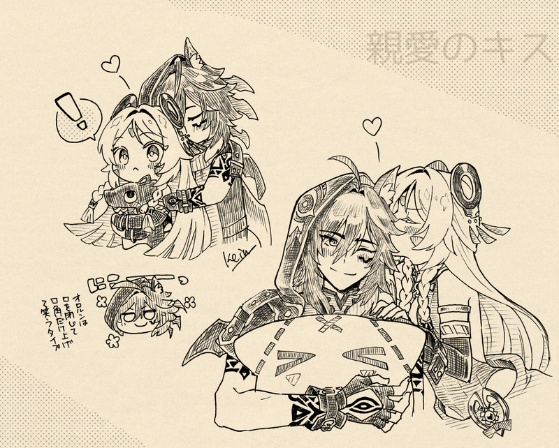 けいる☆quiet followDONEオロシト 親愛のキス ##原神 Tap to full screen (size:1246x1000).Repost is prohibited Let's send reactions! freqpopularsnackothersPayment processing Replies from the creator Follow creator you care about!☆quiet follow けいるDOODLEオロシト(シトラリ不在)時間ないけどどうしても描きたくて殴り書き漫画。オロルンお誕生日おめでとう! けいるDONEオロシト憧れのキスと感謝(敬愛)のキスシトラリばあちゃんは一度懐に入れた相手には重い人だと思ってるので、オロルンのこともあれこれ気にしてしまうんだけど、一方オロルンは「傍にいなくても心は寄り添ってるから大丈夫」と思ってるので、お守り交換の時しか会いに行かないとか普通にありそうで良い。 2 けいるDONEオロシト 親愛のキス けいるDOODLEオロシト線画の休憩がてら描いたものすごいらくがきのオロシト けいるPROGRESSこれから描きたい「キス」をテーマにしたオロシト。めちゃくちゃめんどくさいオタクなので、ばば孫親愛派の私VSオロシト派の私VSばあちゃんは旅人のことが好きだから派の私が常に戦っている。 けいるDOODLE「映画刀剣乱舞-黎明-」を見たよのらくがきすぎるらくがき 2