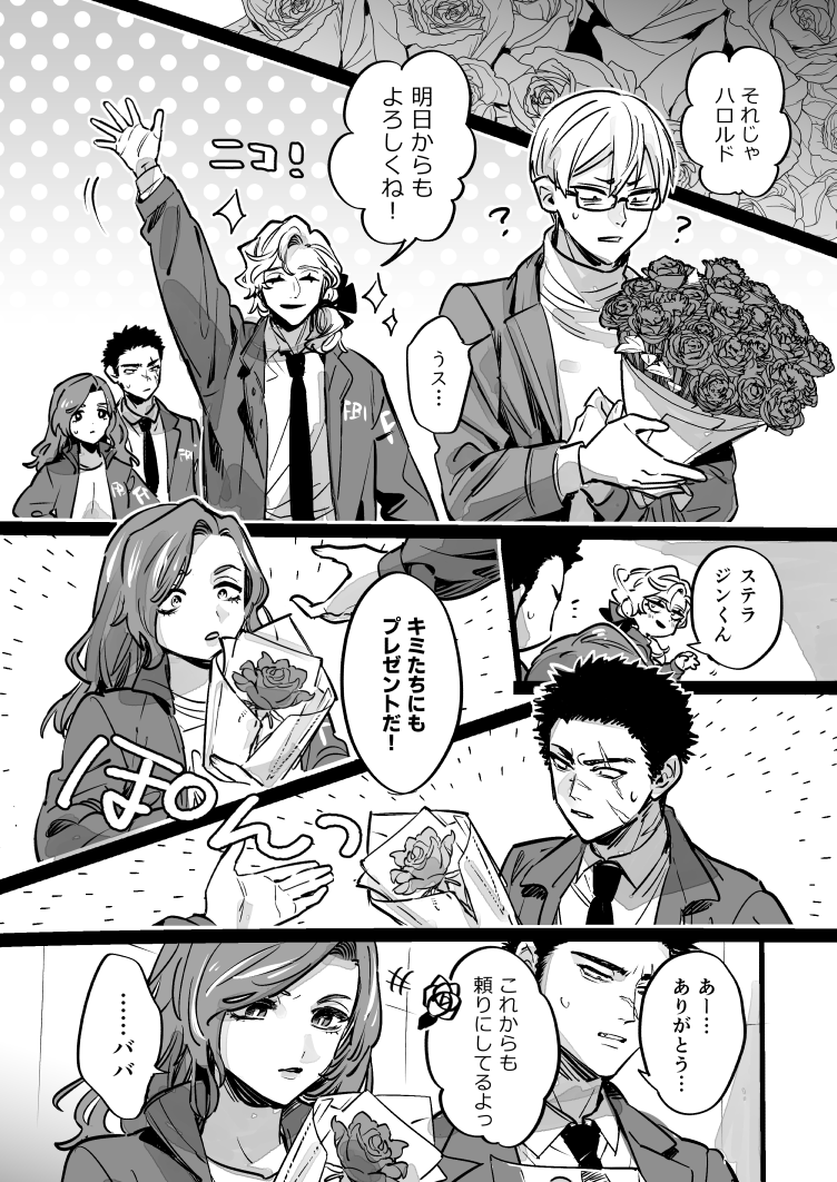 わかりづれえので恥を忍んで説明すると「悩んでたときに薔薇見たら同期の顔が浮かんできたよ!これからもよろしく♥」みたいなこと バーンズはムリせず仲間を頼るリーダーになることに決めたのだった