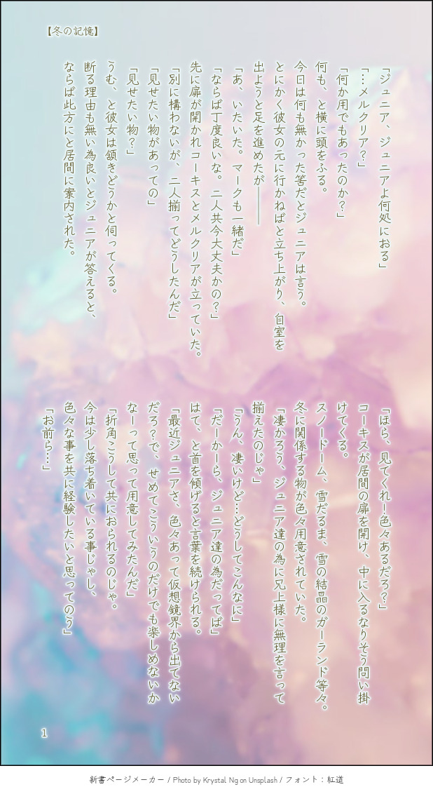水面🦔(焼き蜜柑)☆quiet followDONE短いですが溜めていたのをぽい(ノ´□`)ノ登場人物...ビフレスト陣営のレイズキャラ達 ##ザレイズ show all(+1 images) Tap to full screen (size:618x1132).Repost is prohibited Let's send reactions! freqpopularsnackothersPayment processing Replies from the creator Follow creator you care about!☆quiet follow 水面🦔(焼き蜜柑)DONE【みにバミ冒険日記③~就寝編~】縮んだバミが今度はせんせ~を使ってある事を再現しようとする話🛌ある事とはアレです、某映画のあのシーンです伝われ………バミはこの後もぞもぞもがいてたらそれで起きたせんせ~の手によって(言葉通り)無事救出されました🙏 5 水面🦔(焼き蜜柑)DONE☀️ばるうぉ ある夏の日 5/42人でかき氷を食べる話🍧筆がのっちゃって長くなってしまったブツです🙏今回は主従というより義兄弟の関係を重点にかきかきしました 5 水面🦔(焼き蜜柑)DONE☀️ばみせい 夏のある日バルミスさんが暑さでやられてるのをせんせ~が看病するようなお話 バミ暑いの苦手なのでは説はアレです、ふぉろわ様が仰っていたりこれopの夏の場面で誰よりも脱いでいたところからです(逆にせんせ~は一人日向にいて全く脱いでなかったから強い説) 4 水面🦔(焼き蜜柑)DONE㊗️ザレイズリコレクション1周年~~~!!!🎉🎉🎊🎊✨✨誠におめでとうございます...!!ザレイズオリジナルキャラクター達もですがリコレキャラももうほんと大好きで...これからも彼ら含めた物語楽しみにしております~!!☺️💞 水面🦔(焼き蜜柑)DONE【ウォ様とバル+バミ えいぷりるふ~る2024ver,】(おまけ絵もあるよ(見ると想像しやすいかも))バルドとバルミスさんがて~るずお馴染みの"あの魔物"へと変身してしまいウォ様が面倒見るお話バルバミ達がひたすらぽよんぽよんしながらぽよぽよゆらゆらギスギスしているのでウォ様が頭を抱えている 申し訳ねぇ......しかし書いてるにんげんはめちゃくちゃ楽しかった() 12 水面🦔(焼き蜜柑)DONE📜ばみせい前提、こだまくん+バミによる秘密(?)会議だった話2人が我が道を行くせいでせんせ~にひたすら頑張っていただきました()バミ、それはもう色々体験してきたからバルド(過去)よりも欲求を率直に表へと出すんじゃないかなぁ~と(後悔しないように)それはそれとしてこだまくんは大事な相棒をそう簡単には差し出さないと良いなと 大切にしなきゃ許さないし返して貰う気満々だと私が嬉しい🙏🙏🙏 6 recommended works なつせMAIKINGTOtRジュニア人見知りしたら可愛いよねって言うちびご主人様のほうの絵 なつせMAIKINGTOtRフィルマク マークくんの触覚描き忘れてるわ aoi_kskTIREDオチが落ちなくて投げた。 thxPASTTOS以外のテイルズ絵まとめ 3 ヒノ(ロクミハシコ)DOODLEバレンタインアシュナタ りんぶるDONEザレイズアニーちゃんの日記。参戦イベ(BRIDAL STORIES)前後の時間軸 13 りんぶるDONEザレイズのレイスと母上とヒルダさんのお話熱狂の夏祭り以降、レイス視点。ロナさんが捏造アンド捏造 27 sue_5656DONE【何度でも選択し続ける話⑦】クラトスとマーク①。古代英雄WEBイベント「大きな大樹の樹の下で2」描き下ろし。わりとマークの兄貴気質に夢見てる。 4 sue_5656DOODLE猫の日まとめ 11