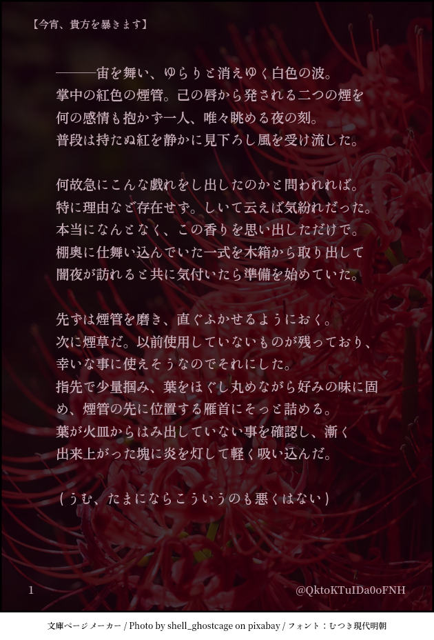 水面🦔(焼き蜜柑)☆quiet followDONE🌙🕯️【ウォーデン様orナーザ様が煙管を吹かす話】煙管似合うだろうな~という突然の思い付きのもと煎じました...ウォ様かナザ様、御相手も(かぷでもゆめでも)ご自由に想像して脳内変換&補足してお楽しみ下さいませ~☺️🙏 ##ザレイズ show all(+3 images) Tap to full screen (size:630x928).Repost is prohibited Let's send reactions! freqpopularsnackothersPayment processing Replies from the creator Follow creator you care about!☆quiet follow 水面🦔(焼き蜜柑)DONE【みにバミ冒険日記③~就寝編~】縮んだバミが今度はせんせ~を使ってある事を再現しようとする話🛌ある事とはアレです、某映画のあのシーンです伝われ………バミはこの後もぞもぞもがいてたらそれで起きたせんせ~の手によって(言葉通り)無事救出されました🙏 5 水面🦔(焼き蜜柑)DONE☀️ばるうぉ ある夏の日 5/42人でかき氷を食べる話🍧筆がのっちゃって長くなってしまったブツです🙏今回は主従というより義兄弟の関係を重点にかきかきしました 5 水面🦔(焼き蜜柑)DONE☀️ばみせい 夏のある日バルミスさんが暑さでやられてるのをせんせ~が看病するようなお話 バミ暑いの苦手なのでは説はアレです、ふぉろわ様が仰っていたりこれopの夏の場面で誰よりも脱いでいたところからです(逆にせんせ~は一人日向にいて全く脱いでなかったから強い説) 4 水面🦔(焼き蜜柑)DONE㊗️ザレイズリコレクション1周年~~~!!!🎉🎉🎊🎊✨✨誠におめでとうございます...!!ザレイズオリジナルキャラクター達もですがリコレキャラももうほんと大好きで...これからも彼ら含めた物語楽しみにしております~!!☺️💞 水面🦔(焼き蜜柑)DONE【ウォ様とバル+バミ えいぷりるふ~る2024ver,】(おまけ絵もあるよ(見ると想像しやすいかも))バルドとバルミスさんがて~るずお馴染みの"あの魔物"へと変身してしまいウォ様が面倒見るお話バルバミ達がひたすらぽよんぽよんしながらぽよぽよゆらゆらギスギスしているのでウォ様が頭を抱えている 申し訳ねぇ......しかし書いてるにんげんはめちゃくちゃ楽しかった() 12 水面🦔(焼き蜜柑)DONE📜ばみせい前提、こだまくん+バミによる秘密(?)会議だった話2人が我が道を行くせいでせんせ~にひたすら頑張っていただきました()バミ、それはもう色々体験してきたからバルド(過去)よりも欲求を率直に表へと出すんじゃないかなぁ~と(後悔しないように)それはそれとしてこだまくんは大事な相棒をそう簡単には差し出さないと良いなと 大切にしなきゃ許さないし返して貰う気満々だと私が嬉しい🙏🙏🙏 6 recommended works なつせPROGRESSTOtRフィルマク2月に出す布教本の予定原作の立ち絵っぽくね aoi_kskTIREDオチが落ちなくて投げた。 ヒノ(ロクミハシコ)DOODLEバレンタインアシュナタ りんぶるDONEミトスが深夜の森でティトレイを見つける話。4部イメージ 18 kasihatanDOODLEヴァン師匠とアレクセイがザレイズのイベントやらなんやらで結構一緒だったのでちょい嫉妬のレイヴン。TOVでレイヴンはヴァン師匠の衣装着れたからね。 kasihatanDOODLEザレイズでのヴァスペリア夏イベントでこんな事があったらいいなという妄想。実際には姿は見せずにレイヴンの口から(やや重い)話題で出ましたね。 水面🦔(焼き蜜柑)DONE🎍描き初めビフレスト~!!!今更ながらに完成したので上げます🙏改めて今年もうるせぇとは思いますがどうぞよろしくお願いします☺️【おまけの一幕】この時点では引き分け、後に痺れを切らしたウォ様様に揃って叱られ話し合った結果『2人でお世話をさせていただこう』と纏まった(笑うところ) 2 sue_5656DOODLE猫の日まとめ 11 水面🦔(焼き蜜柑)DONE㊗️ザレイズリコレクション1周年~~~!!!🎉🎉🎊🎊✨✨誠におめでとうございます...!!ザレイズオリジナルキャラクター達もですがリコレキャラももうほんと大好きで...これからも彼ら含めた物語楽しみにしております~!!☺️💞