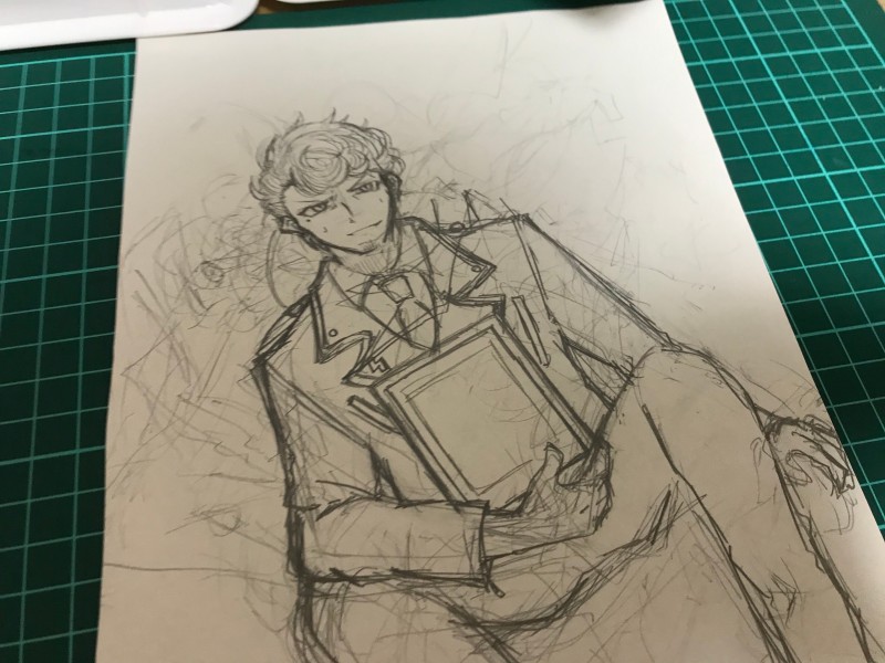 獄さんは、いじめを苦に自殺した、という遠い地のニュースを観て静かに泣くんだろうなという絵。元々ラフ(下絵)では笑ってたんですが、マステ貼ってったら笑顔似合わない雰囲気になってきていつもの仏頂面になりました。本当かどうかは分かりませんが、亡くなった人が蝶になってこちらの世界に帰ってくるというお話があるそうです