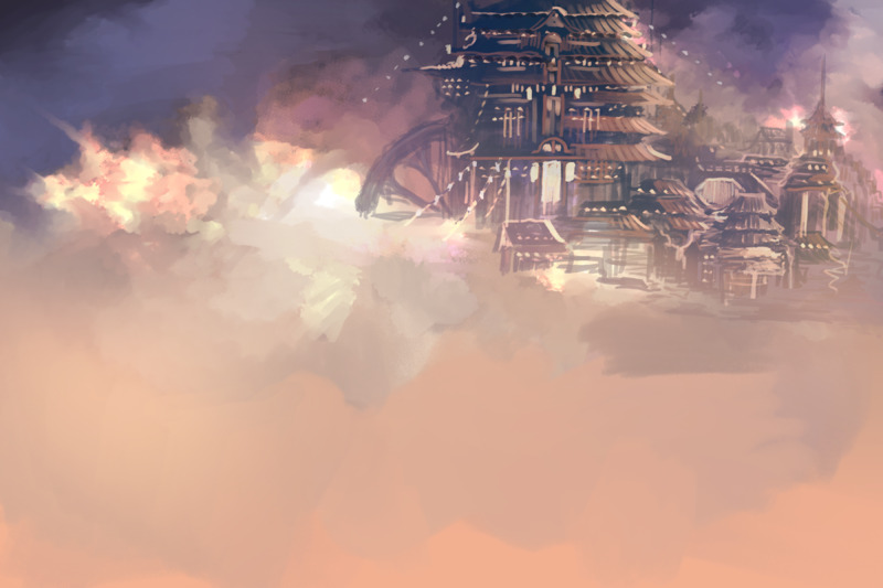 背景供養。エモい感じの空描けたのに、イツルギと桜で隠れちゃった。