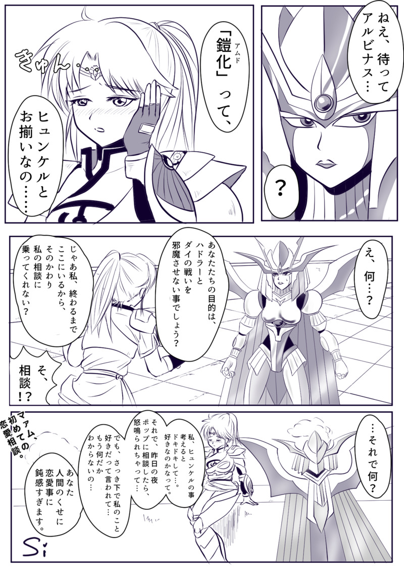 simasimadayone☆quiet followDONEお揃いにキュンとするマァム…。アルビナスと恋愛相談してヒュンケルへの気持ち自覚できるといいね☺️💜❤️ #ヒュンマ hygmma Tap to full screen (size:1240x1754).Repost is prohibited Let's send reactions! freqpopularsnackothersPayment processing Replies from the creator Follow creator you care about!☆quiet follow simasimadayonePROGRESS続き6pぶん。とんでもねぇところまで来ました。(ラーに何言わせててるんだ)ラーは魔族的感覚の持ち主。 6 simasimadayonePROGRESSたまきず時空、ラーとマァムの修行クエストの続き妄想。…の、ラフ。汚くて申し訳ない…。嫉妬するヒュンケルが欲しいので引き続き頑張ります😂 6 simasimadayoneDONE妄想ヒュンマ連携技、魔弾スクライド!!ペーパーをネップリ登録しました。セブンネップリA4片面カラー60円 10/19まで。予約番号:60786726 4 simasimadayoneDONE闘志と天使の生誕祭作品。最近入浴剤を買って、ぼーっとしながら思いついた4コマ2本。もう、はやく付き合っちゃえよな!!! simasimadayoneDOODLE木ドンに嫉妬してからの床ドンはきっと情熱的。…ラーハルトが…、気になるのか……?ち、違うの、ヒュンケル…🤦🏻♀️あーーー自家発電!! simasimadayoneDOODLE最近の私の妄想ブーム、ラー、まむ、嫉妬するヒュン。恋愛感情ではなくまむが強いから興味があるラーの、木ドン🌲…という設定のプロットが大体できてしまった…。最近家族がゲームしないから、私も趣味に没頭しづらくて雑指描きばかり増える😂 related works simasimadayoneDONEヒュンマカーニバルVR2025記念バレンタイン女子会漫画!今回はマァムが恥ずかしがってて楽しかったです。イラストはペーパーに使ってます。このネタ温め続けて3年目、ようやく描けた😂2025.2.7 9 真紀瑠唯DONEじょうじさん@jo_jo_joujiが投下されたエルゴヒュが素敵過ぎて、その後のHMFを妄想してしまいました。928号室のじょうじさんと共にHMFを見守る9階の住民設定です。夢小説のように『私』部分を脳内で置き換えてお読み下さいませ。しあわせ子沢山HMF設定の使用許可を下さったじょうじさんに感謝いたします🙏🙏🙏有難うございました! 1016 下町小劇場・芳流MEMO2023.3.25魔王軍オンリーイベント「魔王軍全員集合!2」合わせサンプル 2983 simasimadayoneDONEHMFウィンターの為にアバター作ったんですが、ヒュンマCMができました。ドラクエにでてくるあの馬です。 2 simasimadayoneDOODLEまさかの公式ソング、にんげんっていいぞ…!歌うイメージのないヒュンが歌ってる衝撃!!そうだよね聖母のお膝で眠るなら嬉しくて歌っちゃうのかもね…✨インフィニティストラッシュ発売おめでとうございます!!!2023.9.28 simasimadayoneMEMOにんげんって……の、ヒュンマ的欲望全開な感想叫び。(センシティブ) simasimadayoneDONEジュンブラフェス記念に描きました!ヒュンマちゃんおめでとう🥳💜❤️せっかく描いたステンドグラス隠れ過ぎた。2024.6.26 2 simasimadayoneDONE獄炎34話扉絵で情緒が……。一人じゃないよ。そばにいるよ。ずっと…。2023.9.21 simasimadayoneDONE獄炎3巻末尾漫画も、ヒュンマ脳にかかればこうなっちまうんだぜ…。ロカに会わせてくれてありがとう!!! recommended works simasimadayoneDONETwitter画像まとめ! 5 💜月々❤️PAST『再会と雨』後編。この後はまあそういう展開です…描こうとしたけど挫折してしまった。ヒュンマは尊すぎてなかなかエ◯に踏み込めない。いつか! 7 下町小劇場・芳流DONE⑹2021.12.11「不死身の長兄」web拍手お礼画面⑥これはちょっとだけヒュンマ 4557 simasimadayoneDONEヒュンマフェス・ウィンター作品②【つなぐ】マァムの胸の痛みを感じとったヒュンが、それを拭い去るようにグッと、グッと!手を握ってほしいんだよお!そしてもっと繋がりたいが為にあまりにも自然に恋人繋ぎにしなおすヒュンと受け入れるマァム。だってお互い好きすぎるんだもん…。 3 simasimadayoneDONEヒュンマフェス・ウィンター作品④【ネップリ用イラスト】 n_tamakizuMOURNINGヒュンマとヒムちゃんの二次のような何か n_tamakizuINFOヒュンマスターフェス開催おめでとうございます。ツイートまとめスクショで参加じゃーい! 2 simasimadayoneDONEヒュンマ・スターフェス作品②ネップリイラスト。 2 simasimadayoneDONEサマスタヒュンマ、ヒュンケルもできました!「この花、お前によく似合うな…」のヒュンです。彼シャツマァムと対のイメージ。切り慣れてきたスイカも切ってあげちゃうよ!最後の一枚は、去年の指描きを放置してたやつ。貝殻と足跡。ちょうどいいので渚ヒュンマコレクションに納めておきます。 4