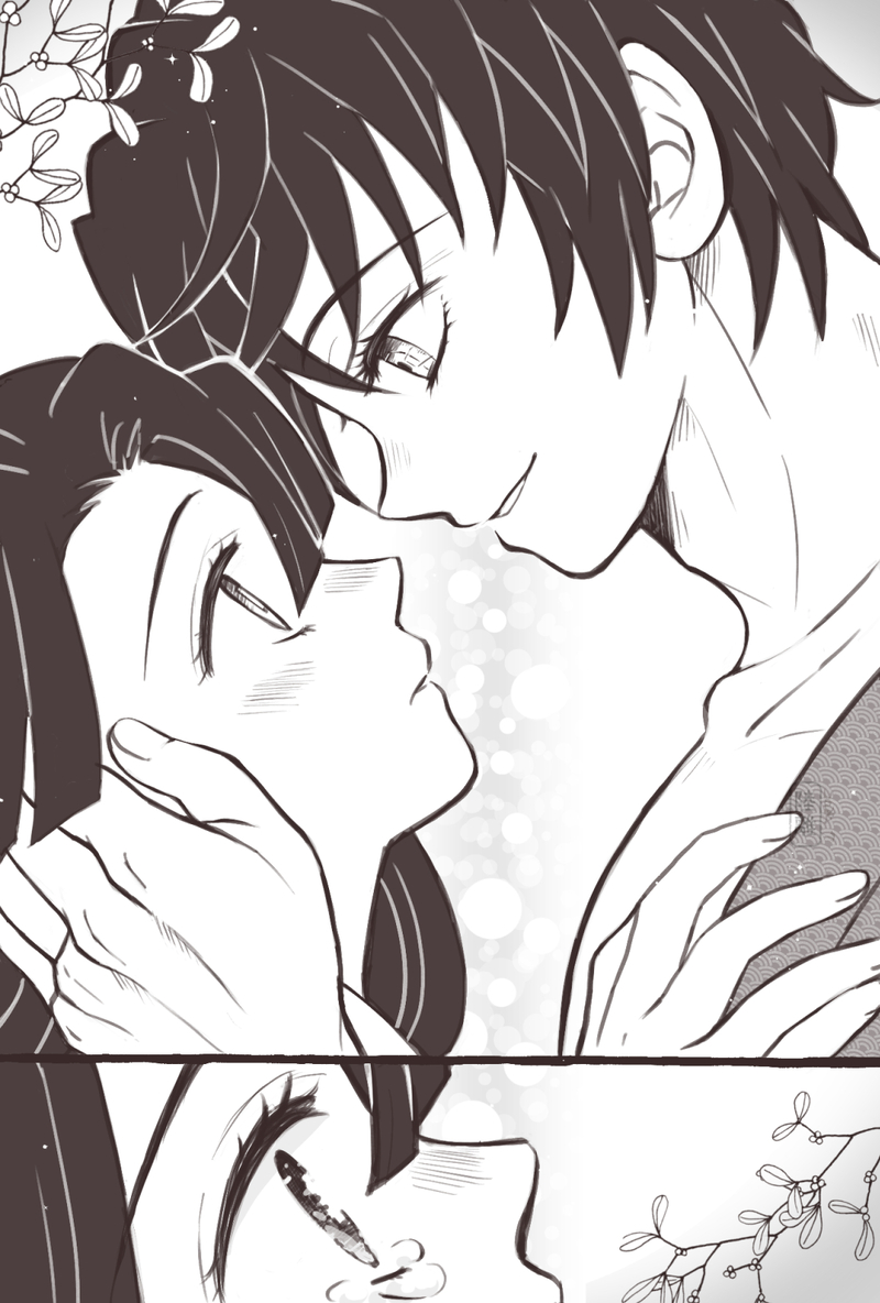 見つめ合う夫婦の方はお正月(冬)のお話だったので永遠の象徴と言われるヤドリギを内容的に合うかなと置いてみました