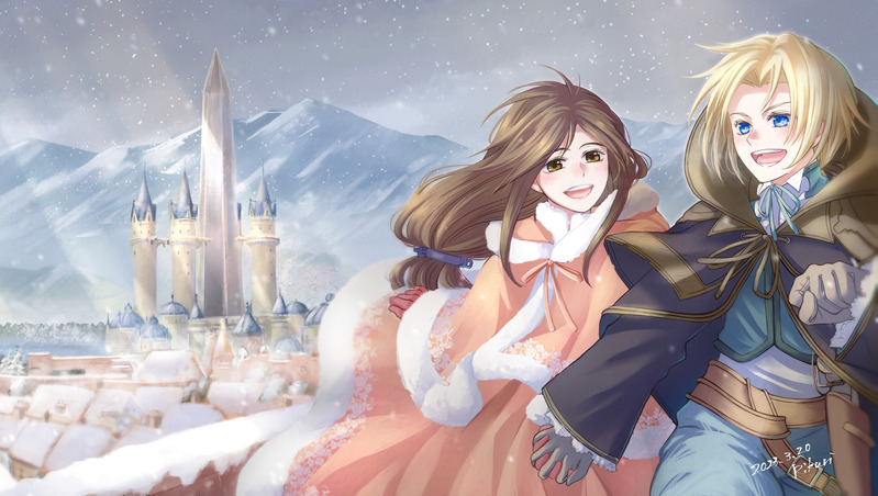お題は「アレクサンドリアで雪の降る中冬服を着た二人が仲良く手を繋いで歩いている」です(すみません、走らせちゃいました