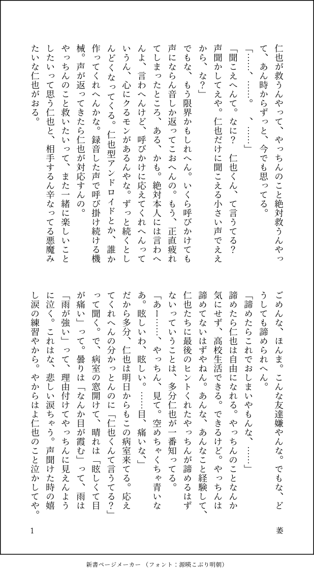 しをる☆quiet followSPOILER #我ナポの夏てんしとあくまのなみだのはなしです。二年生、昇華できない思いの果ての涙が嬉し涙であって欲しいです。 Tap to full screen (size:618x1132).Repost is prohibited Let's send reactions! freqpopularsnackothersPayment processing Replies from the creator Follow creator you care about!☆quiet follow しをるSPOILER #蘭たん変葬多大な捏造と、ほんのりネタバレ。生前シーンを薄く引き伸ばし引き伸ばしした妄言。こんなこともあるのかもしれない。ずっと感情が迷子。まだ。 4 しをるSPOILER #蘭たん変葬ネタバレ捏造ありの短歌です。最後の短歌のこと、気に入っています。いつも「簾」のこと「すだれ」で変換しているところからの短歌もあります。いつまで狂えばいいんかな。 しをるSPOILER #蘭たん変葬ネタバレ、捏造あります。前にあげた「あったかもしれない日常と~」の二藤簾目線のようなもの。やっぱり咀嚼中なので消えるかもです。 3 しをるSPOILER #蘭たん変葬ネタバレを含みます。あったかもしれないいつかの日常と、あの5時間で露になったものをない混ぜにした文章。二藤兄弟の21年と5時間をずっと考えている。咀嚼中なので突然消えるかもしれません。 3 しをるSPOILER #オールスター沼男本編、後日談ネタバレあります。砂糖田柔三の一人語り。※感想戦を斜め読み、ならぬ斜め聞きして書いたものです。解釈違いがありましても責任は負いません。深く聞いて解釈違いがあれば下げます。 1462 しをるSPOILER #オールスター沼男捏造、ネタバレ等含みます。超探偵と弟子が出逢うとき。※感想戦、演者さんの生放送等を斜め読み、斜め聞き(?)して書いたものです。解釈違いがあっても責任は負いません。深く聞いて解釈に違いがあれば下げます。 2458 related works zunda828SPOILERネタバレ有せっかく描いたので供養しますもうすぐ夏休みですね🌱#我ナポの夏 3 agunnos1SPOILER我ナポの夏の後日談を捏造しました。八彦が病院で入院中という設定なので入院服着用中。描いた本人は漫画を初めて描いたので色々とおかしいです。パッションだけで描きました。温かい目で見てください。 2 カザミチSPOILER #我ナポの夏 3年生コンビ本当にかっこいい(クッション1枚+漫画2枚) 3 ながいもCAN’T MAKEセッションめっちゃ楽しかったです 3 ネジちゃんSPOILER #我ナポの夏 ネタバレらくがき 4 セプナDOODLEネタバレなしイラストまとめ。前半4枚はセッション前のイラスト 5 nappo_lightSPOILER #我ナポの夏 エピローグネタバレのにやくん endou_Mame31SPOILER #我ナポの夏重要なネタバレ含みます❗️2年組組幼少期とED後の捏造漫画 2 amexxx46DOODLE #我ナポの夏 3 recommended works セプナDOODLE🍝山脈の落書き詰め合わせ。【随時追加予定】ほぼネタバレ無し 28 セプナDONE⚠️普段着捏造⚠️えべとNPC達で原宿及び日本観光してくれ…この絵から発展して後日譚書きました。【https://www.pixiv.net/novel/show.php?id=15274278】 3 セプナSPOILER「 ‼︎」⚠️志海EDバレ注意⚠️ 3 榾(ほた)SPOILER志海三郎のなつやすみ 捏造二次創作ちょっと続きっぽい 5 FS3U3coY3CDRGN8SPOILERてぃあぴじ… たまちーDOODLE平見先輩良いキャラだなあ ながいもCAN’T MAKEセッションめっちゃ楽しかったです 3 suzushima_reiSPOILERにやくんとやつひこくんに情緒をぶっ壊されたオタク 助けてくれ〜〜しんどすぎてタグ全然見れてない お被りあっても許して…… 5 セプナSPOILERK2と八木山がお酒の席で喋る話⚠️本編ネタバレ注意⚠️ 1738