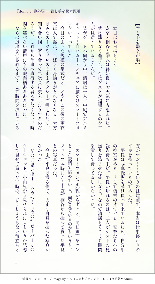 支部で小説、ツイッターでは小ネタやイラスト、4コマとかちまちま上げてますので、そちらもよろしくお願いします☺️✨