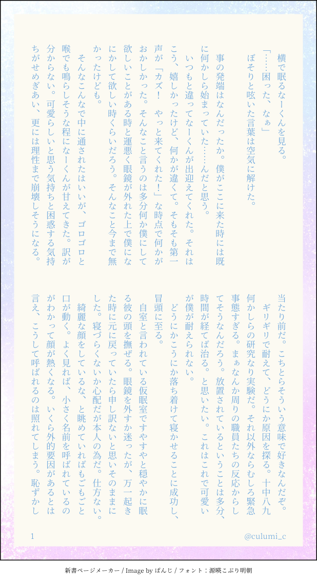 長文は何故かアップロードするとページ順がめちゃくちゃになるので左下のページ数見て読んでくれ……