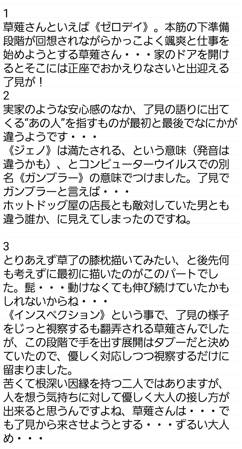 おちゃや☆quiet followSPOILER草了本の「こういう意図で描いてました〜」的語りです。もっと細かく書いてまとめたかったけどきちんとした文章が書けなくてあきらめました。 show all(+3 images) Tap to full screen (size:1078x1998).Repost is prohibited Let's send reactions! freqpopularsnackothersPayment processing Replies from the creator Follow creator you care about!☆quiet follow おちゃやPROGRESS久々に原稿をすこしやった定規使ったり綺麗な線引くの面倒だからフリーハンド(補正あり)でいくゾ おちゃやSPUR ME※ネタバレ含みますDinoさんに送りつけた草了再録本のスーツのお話イメージは膨らますらくがき。挿絵つきお手紙的なものです公開しないのもったいないと言ってもらえたので貼ります 2 おちゃやPROGRESS描くページごちゃごちゃなので分かんなくならないように仮置き 9 おちゃやDOODLE草了のやましき没データ おちゃやSPOILER草了本の「こういう意図で描いてました〜」的語りです。もっと細かく書いてまとめたかったけどきちんとした文章が書けなくてあきらめました。 4 おちゃやPROGRESSR18パート確認用 15 recommended works 相良@捏造漫画奴PROGRESSトーンの貼り方間違えてて当初の締め切り超えてやり直しなう。(大罪人作業自体は楽しいし単純作業なんだけど;;;うぐぅ;;中でも特にお気に入りの一松のコマだけ一部公開。今日の夜また作業;;うぅ…分裂したい;;外出したくない;;#原稿 #家宝は寝て松20 #一松 #目元 マイナス1PROGRESSストーリー上最後のページまできたーあとは描き残しと怒涛の動物線画… キネツカPROGRESSおさけ こいとPROGRESSハァ…ハァ…(難産過ぎて満身創痍) 大根🍢PROGRESSにょた本進捗個人的にめっちゃタイプなはじめちゃんが描けた🥳 ark1335PROGRESS今日のヨシュカ 楽しいことしかないDONEあーーー年明けて五日で下痢初めしてしまいました あけおめ 2 snskknePROGRESS表紙予定イメージ可愛いくなりそうな予感三角は黒と赤だけにした方が良いかな 0Raya0PROGRESSこちらが!今回の!原稿マンションになります!!!ネームやっっっっっっと切れた……。こんなに脳内カメラ動かないことある???の連日で苦しかったな……。闘いはこれから……。(2021/01/24)