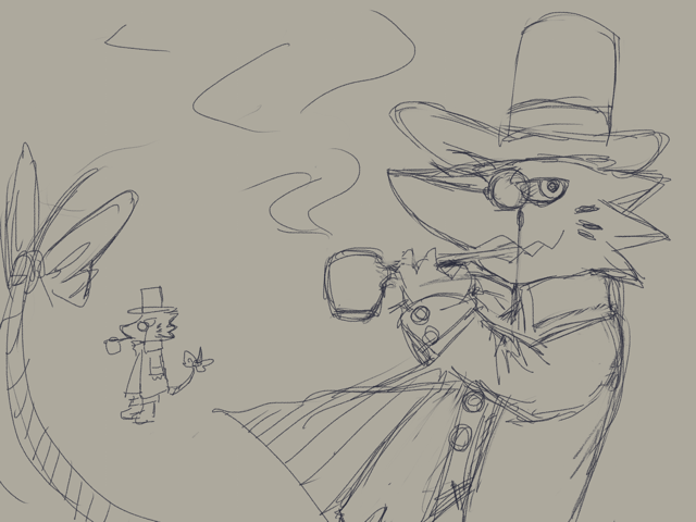 ラフを描くなら今のうちと思いモノクル姿のカットインをば(2020/9/21)