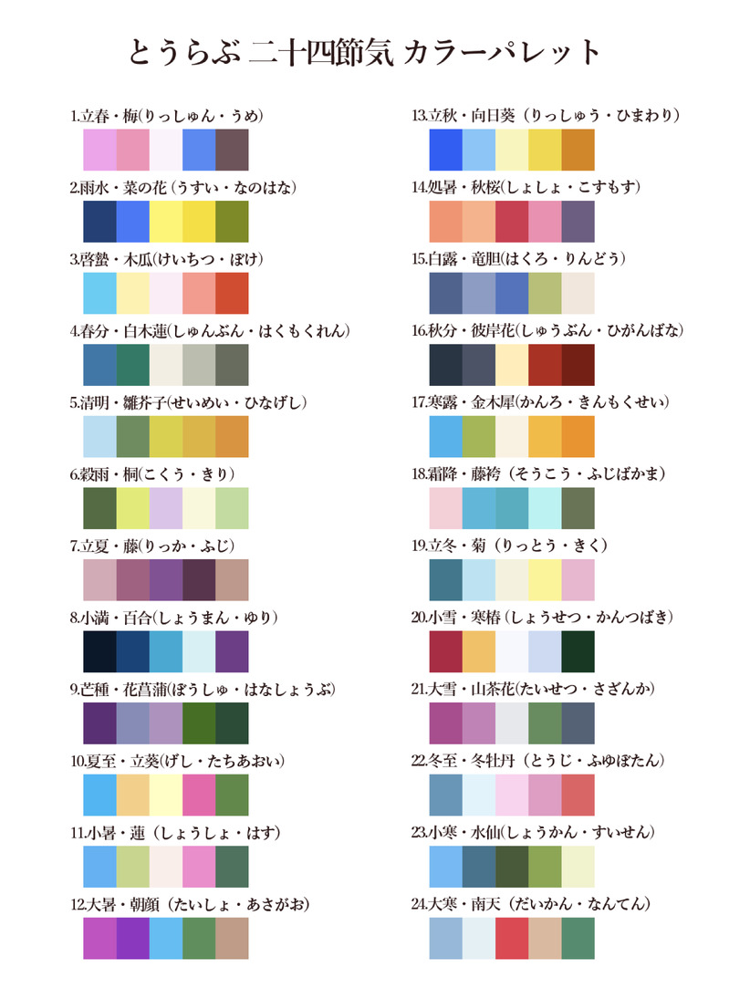 景趣のカラーパレットを、二十四節気ベースで作ってみました🎨